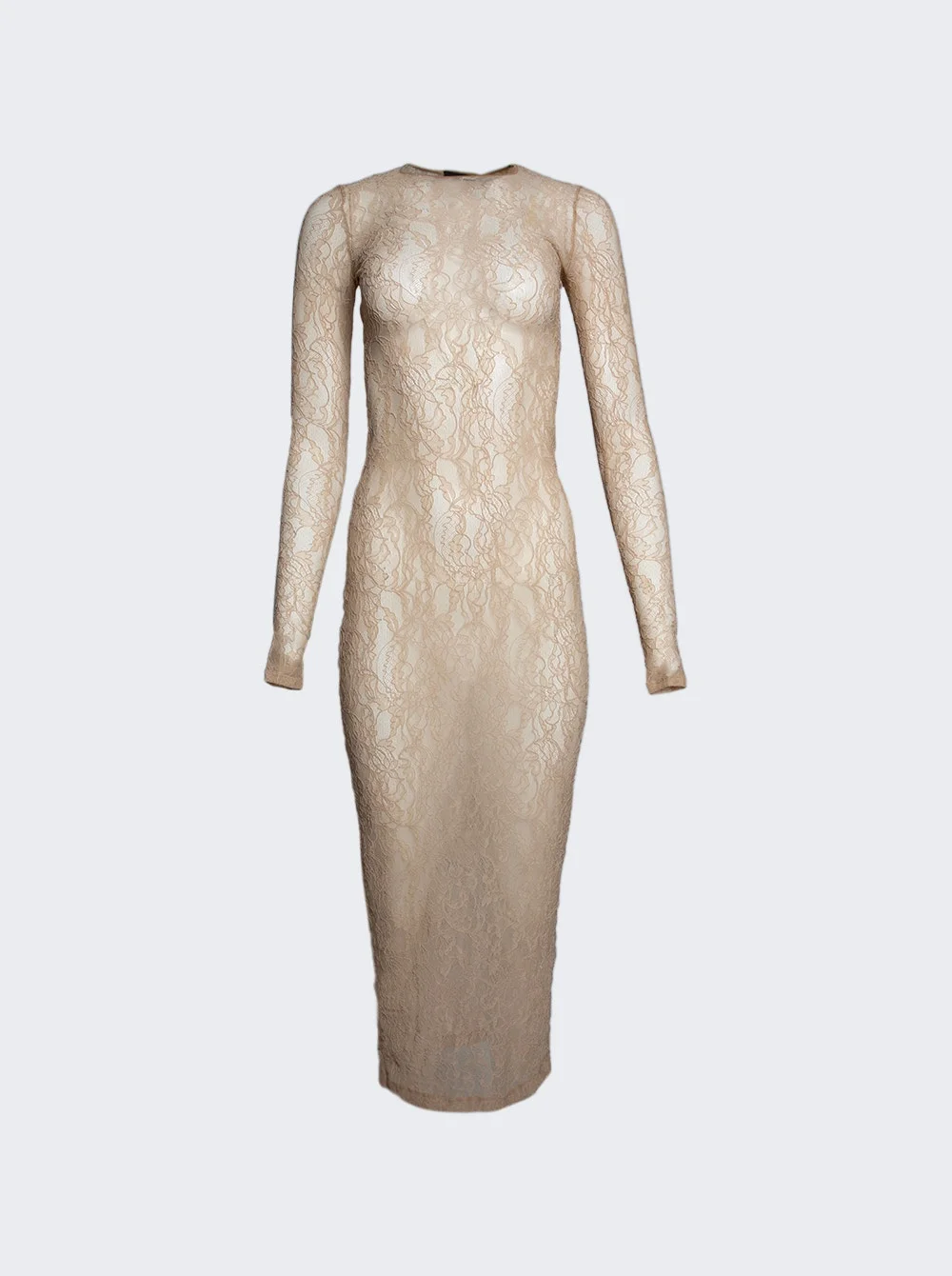 Details - Maxi length - Long sleeves - Crew neckline - Body-skimming silhouette - Sheer finish - Care according to label - Material: 85% Polyamide, 15% Elastane Size Information: Vendor Color Code: Brand Style: W5092F25LC Designer/Brand: WARDROBE.NYC