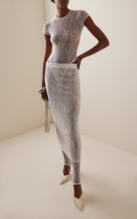 The brainchild of Vogue Australia stylist Christine Centenera and designer Josh Goot, Wardrobe.NYC represents the ultimate in luxurious staples. Designed with a form-fitting silhouette and stirrup leg finish. Cut in an intricate, lightweight Italian stretch lace. Features include a high elasticized waistband and in-leg seam construction for a sleek profile. PRODUCT DETAILS - Pre-Fall '25 - Pull on - Composition: 85% polyamide, 15% elastane - Dry clean - Made in Portugal SIZE & FIT - Designed for a slim fit