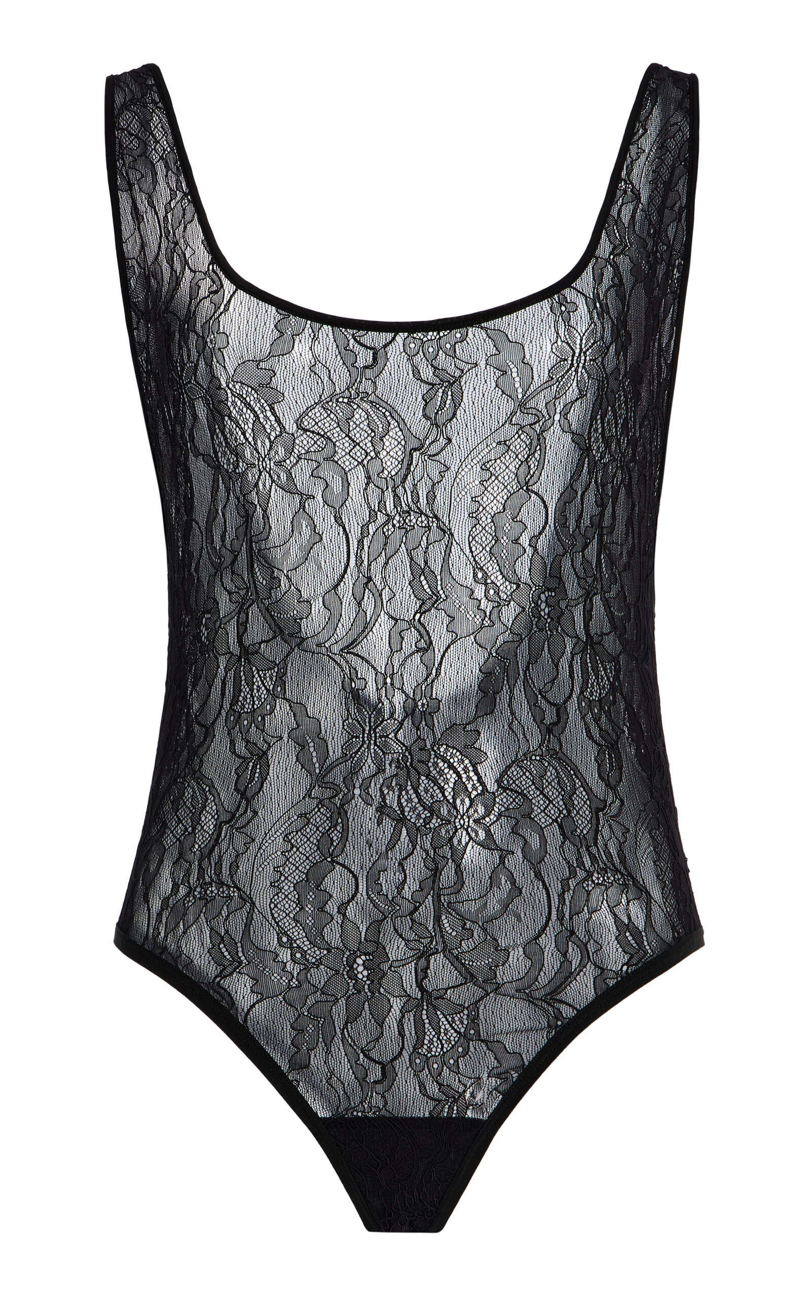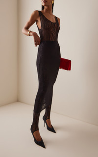 The brainchild of Vogue Australia stylist Christine Centenera and designer Josh Goot, Wardrobe.NYC represents the ultimate in luxurious staples. Designed with a form-hugging silhouette and tank-inspired neckline. Cut in an intricate, lightweight Italian stretch lace. Features include a plunging U-line back and high-cut leg opening with adjustable snap closures. PRODUCT DETAILS - Pre-Fall '25 - Snap fastening - Composition: 85% polyamide, 15% elastane - Dry clean - Made in Portugal SIZE & FIT - Designed for a slim fit