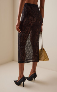 The brainchild of Vogue Australia stylist Christine Centenera and designer Josh Goot, Wardrobe.NYC represents the ultimate in luxurious staples. This pull-on skirt is made from sheer lace with ample stretch for a body-hugging fit. PRODUCT DETAILS - Pre-Fall '25 - Slip on - Composition: 85% polyamide, 15% elastane - Dry clean - Made in Portugal SIZE & FIT - Designed for a slim fit