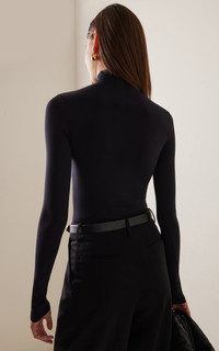 Christine Centenera and Josh Goot, the pair behind Wardrobe.NYC, have teamed up with supermodel Rosie Huntington-Whiteley to create the style icon's signature wardrobe. The RHW Long Sleeve Bodysuit is a new essential layering piece, as imagined by Rosie. Cut in a luxurious Italian jersey, featuring a high neck, pintuck detail, and high-cut leg opening with adjustable snap closures. PRODUCT DETAILS - Resort '25 - Snap fastening - Composition: 84% polyamide, 16% elastane - Machine wash - Made in Portugal SIZE & FIT - Our model is wearing a size Small - Model is 5'11" with a 31.5" bust, 23" waist, and 35" hip - Designed for a slim fit