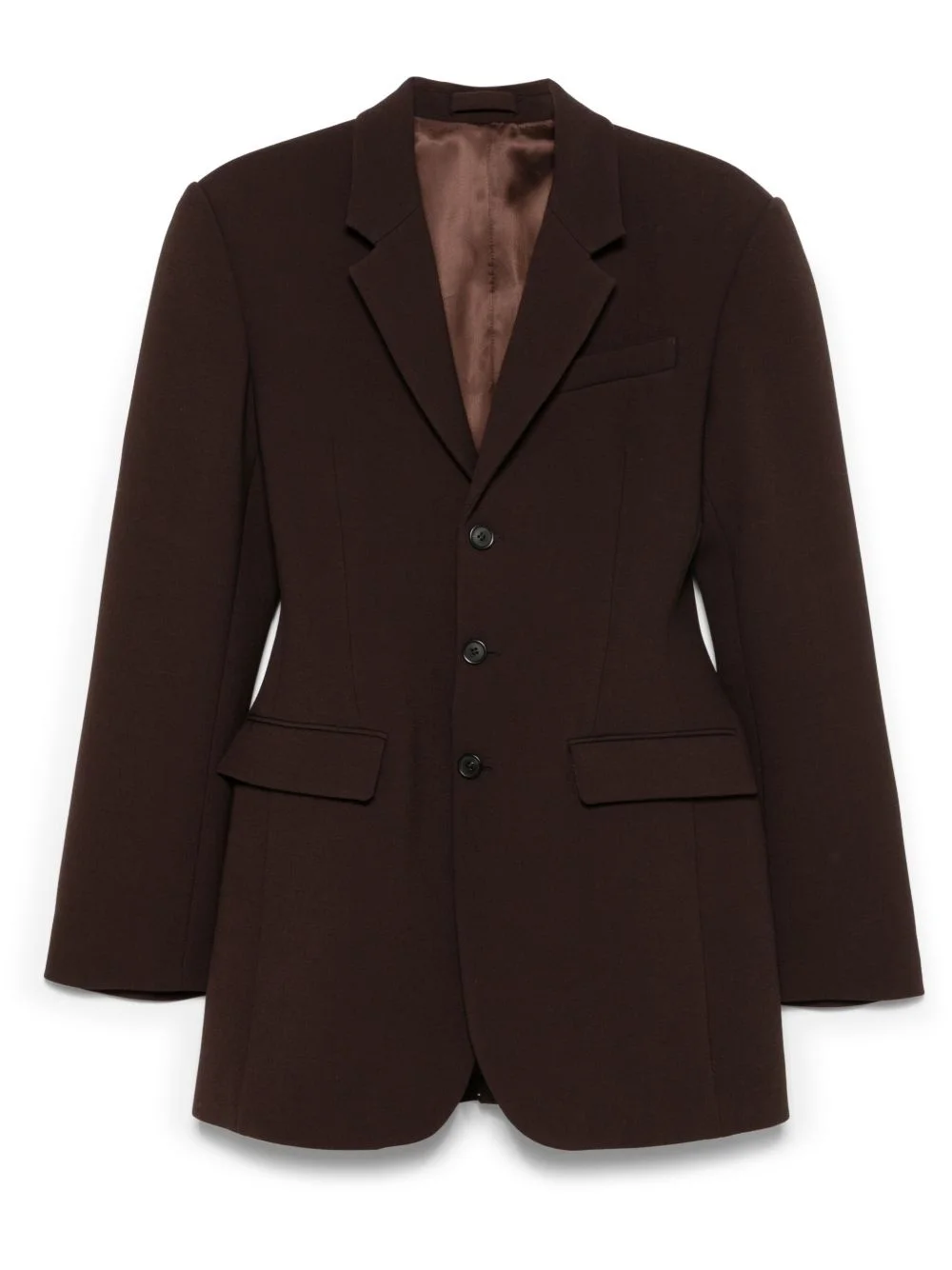 longline blazer Highlights - Havana brown - Front button fastening - Chest welt pocket - Two front flap pockets - American rear vent Imported Composition Virgin Wool 100% SIZE & FIT Model measurements Height 5 ft 10 in(1.77 m) Bust/Chest 32.28 in(82 cm) Hips 35.03 in(89 cm) Waist 25.19 in(64 cm) Measurement BUST 32.28 in(82 cm) SLEEVE LENGTH 25.19 in(64 cm) Shoulder Width 17.32 in(44 cm) FittingInformation Designed for a slim fit that sits just away from the body offering a close yet comfortable fit The internal shoulder pads offer a structured shape Made from a midweight non-stretch fabric