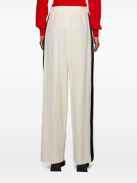 low-rise tuxedo trousers Highlights - White - Concealed front fastening - Two side slash pockets - Pressed crease - Side stripe detailing Imported Composition Outer: Wool 100%, Silk 100% Lining: Cotton 100% SIZE & FIT FittingInformation Designed with a wide-leg cut, these trousers allow for a close fit at the waist and offer a loose and roomy fit over the leg Made from a midweight non-stretch fabric Washing instructions Read Manufacturer Guidelines