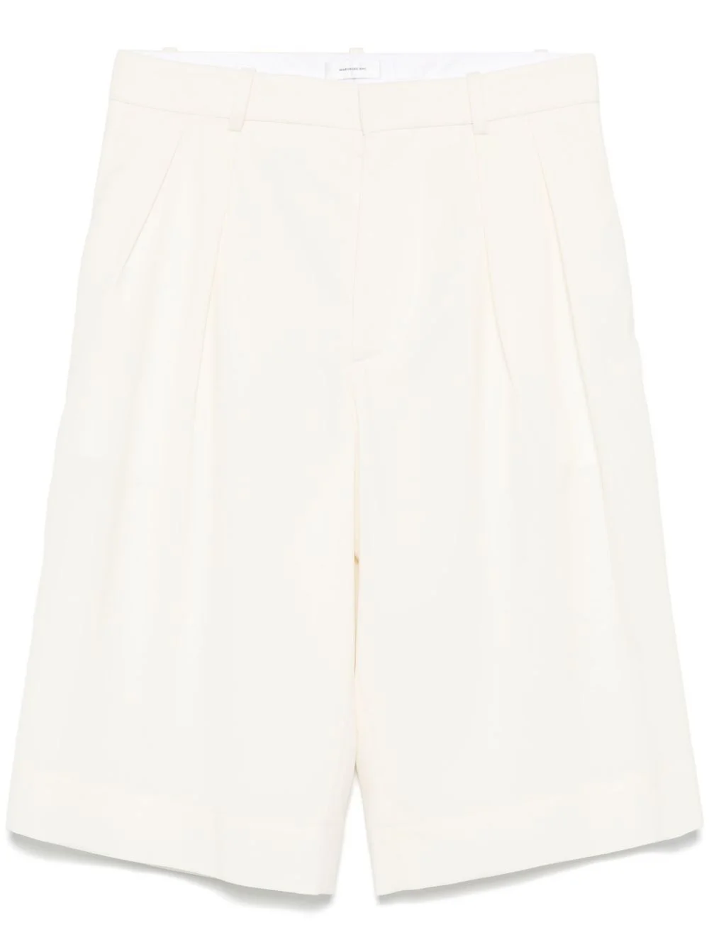 low-waist shorts Highlights - White - Virgin wool - Canvas - Low waist - Concealed front button, hook and zip fastening - Belt loops - Pleat detailing - Two side slash pockets - Full lining - Thigh-length Imported Composition Outer: Virgin Wool 100% Lining: Viscose 100% SIZE & FIT Model measurements Height 5 ft 10 in(1.78 m) Bust/Chest 33.85 in(86 cm) Hips 36.61 in(93 cm) Waist 26.77 in(68 cm) FittingInformation Designed with a voluminous wide-leg fit Made from a midweight non-stretch fabric