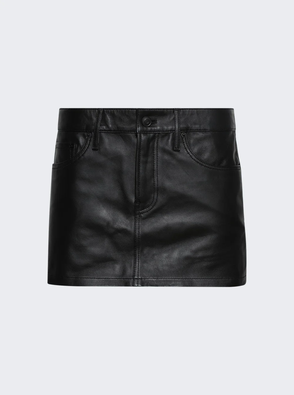 Details - Regular fit - Mini length - Care according to label - Zip and button fastening - 5 pocket design - Material: 100% leather - Model is 5'9"/175cm and is wearing a size S Brand Style: W2093PCL Designer/Brand: WARDROBE.NYC