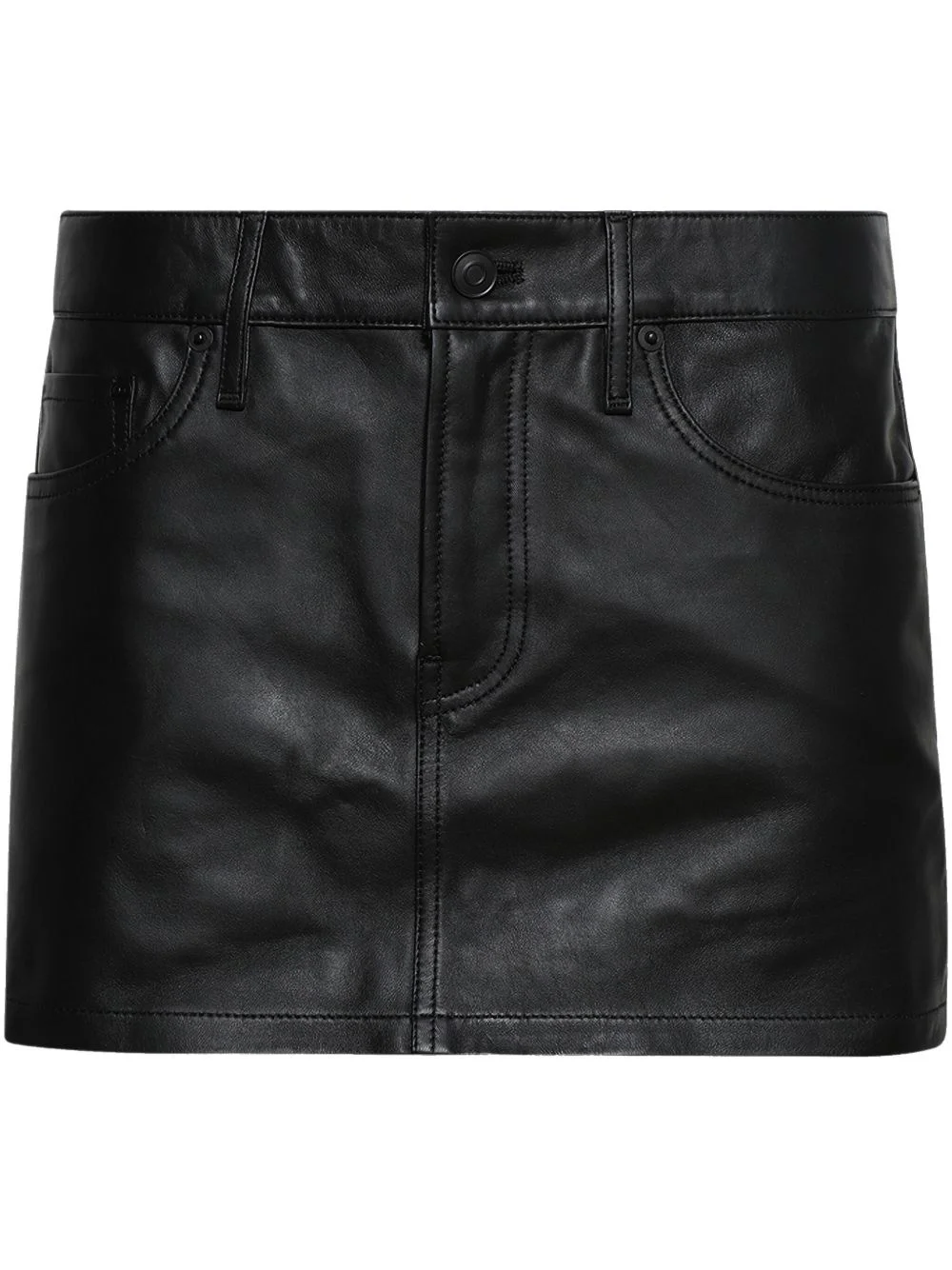leather mini skirt Highlights - Black - Concealed fly and button fastening - Classic five pockets - Belt loops - Tonal stitching Made in France Composition Sheepskin 100% Washing instructions Specialist Cleaning