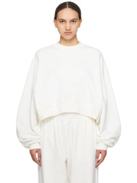 French terry sweatshirt. · Rib knit crewneck, hem, and cuffs · Cropped hem · Dropped shoulders Part of the WARDROBE.NYC x Hailey Bieber collaboration. Supplier color: Off white 100% cotton. Made in Portugal 241277F098002