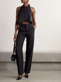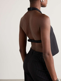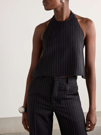 EDITORS'NOTES WARDROBE.NYC's halterneck tank is made from pinstriped wool-twill and turns to reveal a skin baring open-back tempered by a single buckled strap. Wear yours solo or over crisp shirting, finishing the look off with tailored pants. SIZE & FIT Model measurements: - Fits true to size, take your normal size - Designed for slim fit - Lightweight, non-stretchy fabric - Model is 177cm/ 5'10" and is wearing a size Small - Bust: 79cm/ 31" - Waist: 61cm/ 24" - Hip: 89cm/ 35" DETAILS & CARE - Black and white wool-twill - Buckle fastenings at back - 100% virgin wool; lining: 100% viscose - Dry clean