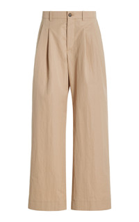 The brainchild of Vogue Australia stylist Christine Centenera and designer Josh Goot, Wardrobe.NYC represents the ultimate in luxurious staples. Think: minimalist blazers, button-down shirts, leggings, and puffer jackets tweaked to utter perfection—courtesy of Goot’s design precision and Centenera’s legendary styling know-how. Inspired by classic chinos, these pants are cut from a robust cotton-blend drill into a wide-leg silhouette with a double-pleated waist that sits lower on the hips. PRODUCT DETAILS - Pre-Fall '24 - Button and concealed zip fastening along front - Composition: 78% cotton, 22% polyamide - Dry clean - Imported SIZE & FIT - Our model is wearing a size Small - Model is 5'10" with a 31.5" bust, 23.5" waist, and 35" hip - Designed for a relaxed fit