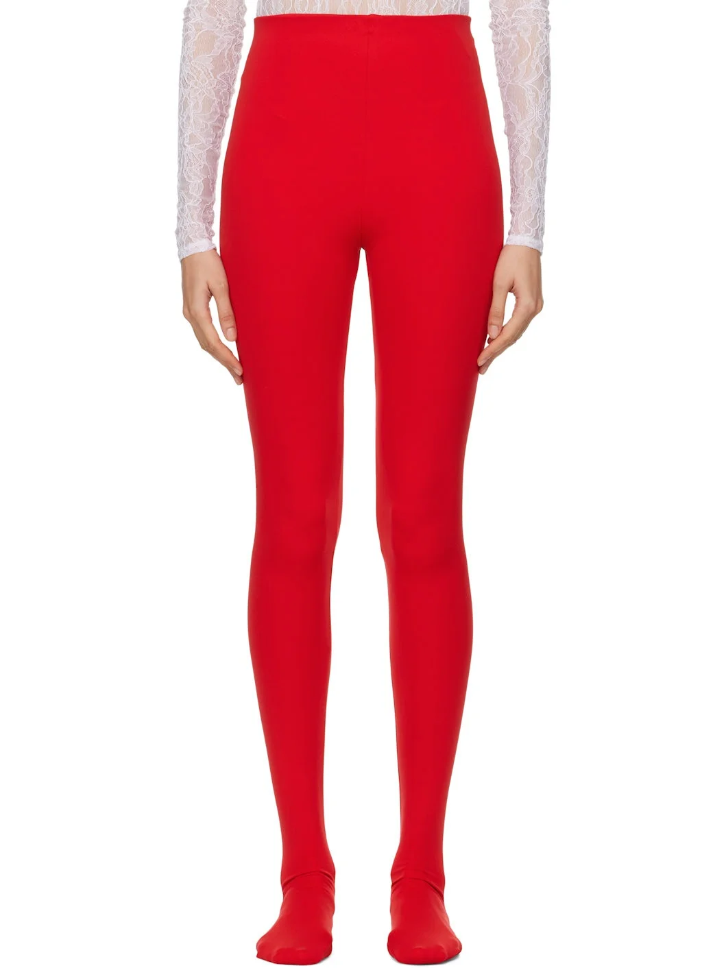 Stretch nylon jersey leggings. · High-rise · Elasticized waistband · Integrated feet Supplier color: Red 86% polyamide, 14% elastane. Made in Portugal 251277F085000