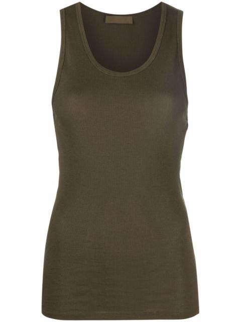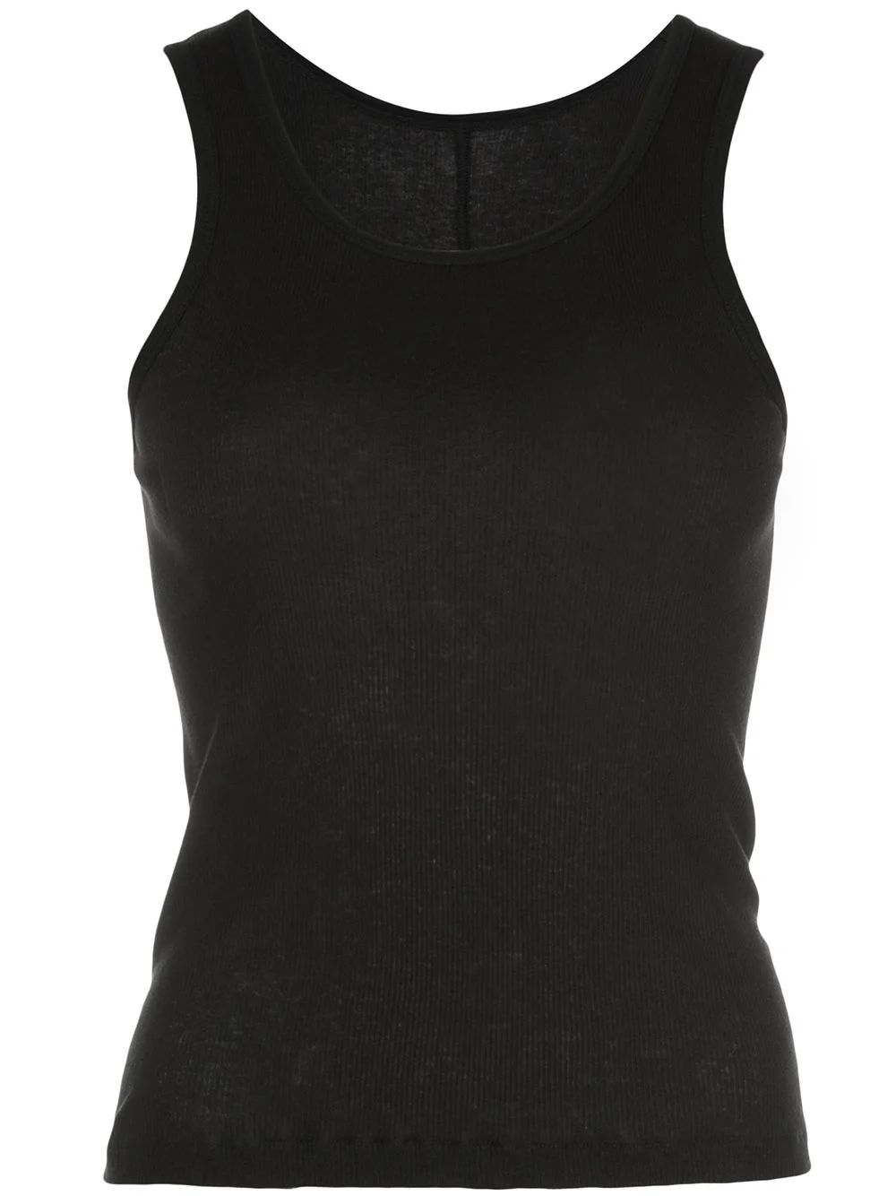 ribbed slim-fit tank top Highlights - Black - Cotton - Round neck - Sleeveless - Straight hem - Fine ribbed - Seam detailing Imported Composition pure cotton 100% SIZE & FIT Model measurements Height 5 ft 10 in(1.79 m) Bust/Chest 31.1 in(79 cm) Hips 33.85 in(86 cm) Waist 22.83 in(58 cm) Measurement LENGTH 24.8 in(63 cm) BUST 19.68 in(50 cm) Washing instructions Hand Wash