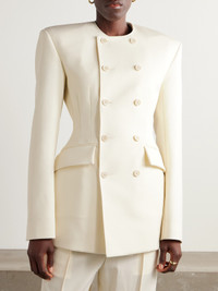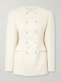 WARDROBE.NYC and Rosie Huntington-Whiteley team up on a collection that merges the brand's chic minimalism with the model's refined personal style. This mini dress is made from twill that nips in at the waist and has a collarless neckline and smart double-breasted front. Wear yours with tights or tailored pants.