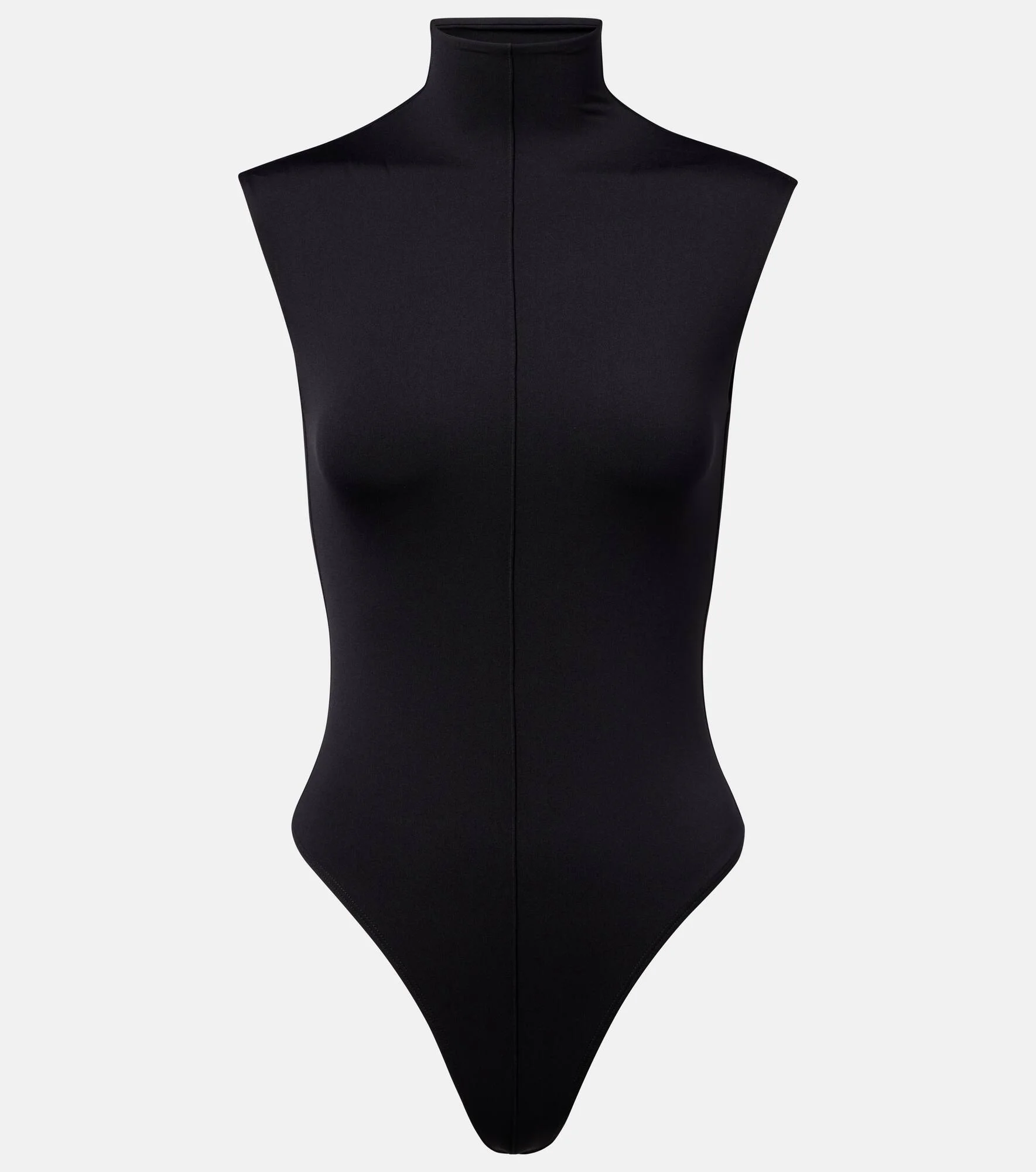 Wardrobe.NYC's elegant everyday essentials are produced in limited numbers with the needs of modern urban life in mind. The RHW bodysuit is crafted from comfortable jersey and features a high neck and pintuck detail. Product Details - Material: 84% polyamide, 16% elastane - Care instructions: machine wash at 30 degrees - Made in Portugal - Designer color name: Black - Item color: black - Collar: mockneck - Closure: snap-buttoned fastenings - Item number: P01075438 Size & Fit - True to size - Semi-sheer - Fitted - Stretchy fabric - High-cut leg - Height of model is 174cm-68.5" and wears a size XS