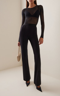 Christine Centenera and Josh Goot, the pair behind Wardrobe.NYC, have teamed up with supermodel Rosie Huntington-Whiteley to create the style icon's signature wardrobe. The RHW Stretch Trouser is an essential evolution of Wardrobe.NYC's signature legging. Cut in a technical Italian stretch fabric, with elongating leg flared toward the hem, pintuck details at front and back, and an exposed elastic waistband. PRODUCT DETAILS - Resort '25 - Pull on - Composition: 65% viscose, 30% polyamide, 5% elastane - Hand wash - Made in Portugal SIZE & FIT - Our model is wearing a size Small - Model is 5'10" with a 31.5" bust, 23.5" waist, and 35" hip - Designed for a regular fit