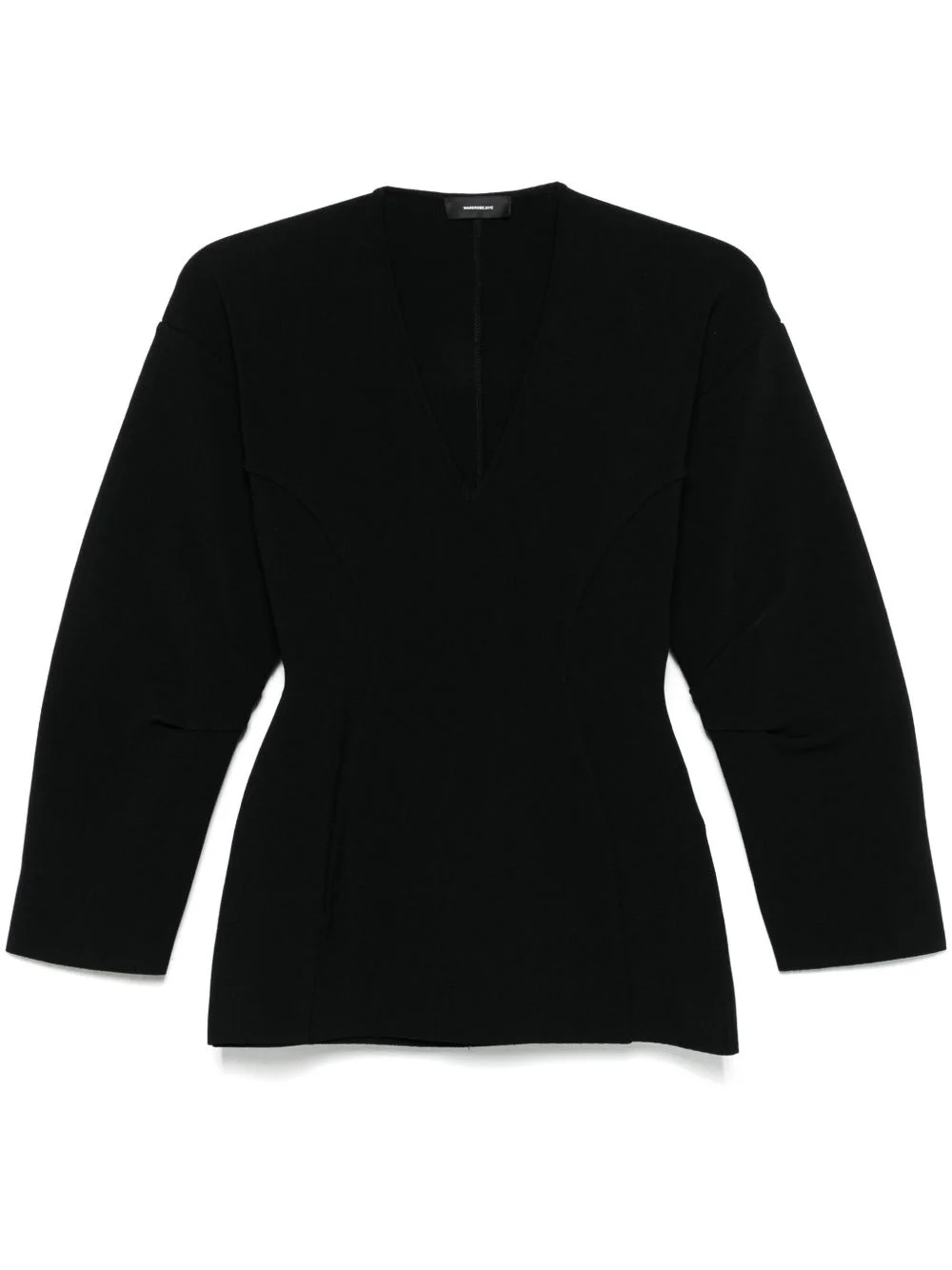ribbed top Highlights - Black - V-neck - Long sleeves - Seam detailing Made in Italy Composition Viscose 83%, Polyester 17%