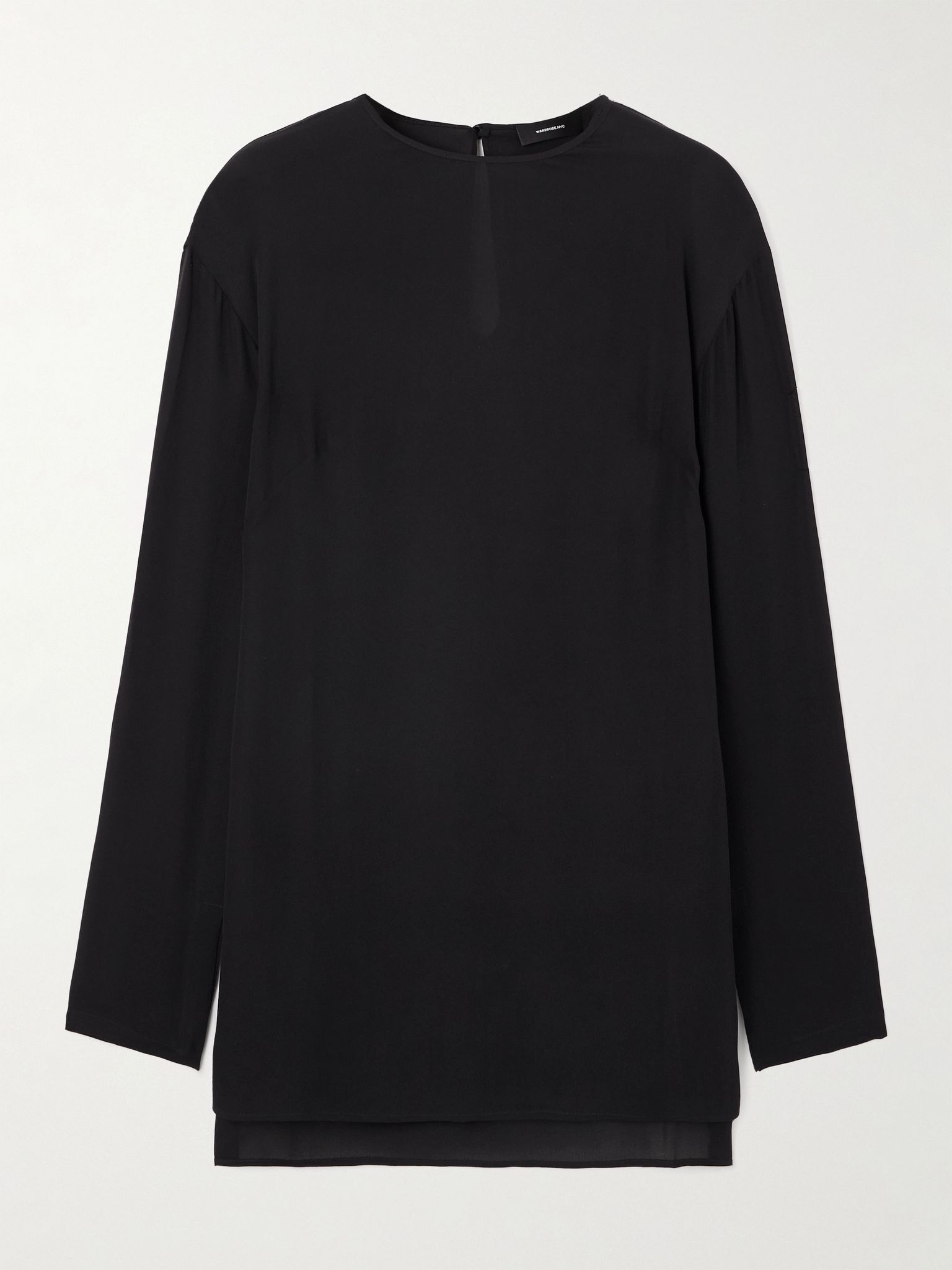WARDROBE.NYC's blouse is made from silk-georgette that's slightly sheer, so be sure to underpin yours with a tonal bralette or tank. Designed for a relaxed fit, it has split cuffs and a subtle high-low hem. Layer yours over a slip skirt. Size & Fit - Fits true to size, take your normal size - Designed for a slim fit - Lightweight, non-stretchy fabric - Model is 175cm/ 5'9" and is wearing a size Small Model measurements: - Bust: 79cm/ 31" - Waist: 61cm/ 24" - Hip: 89cm/ 35" Details & Care - Black silk-georgette - Button-fastening keyhole at back - 100% silk - Dry clean