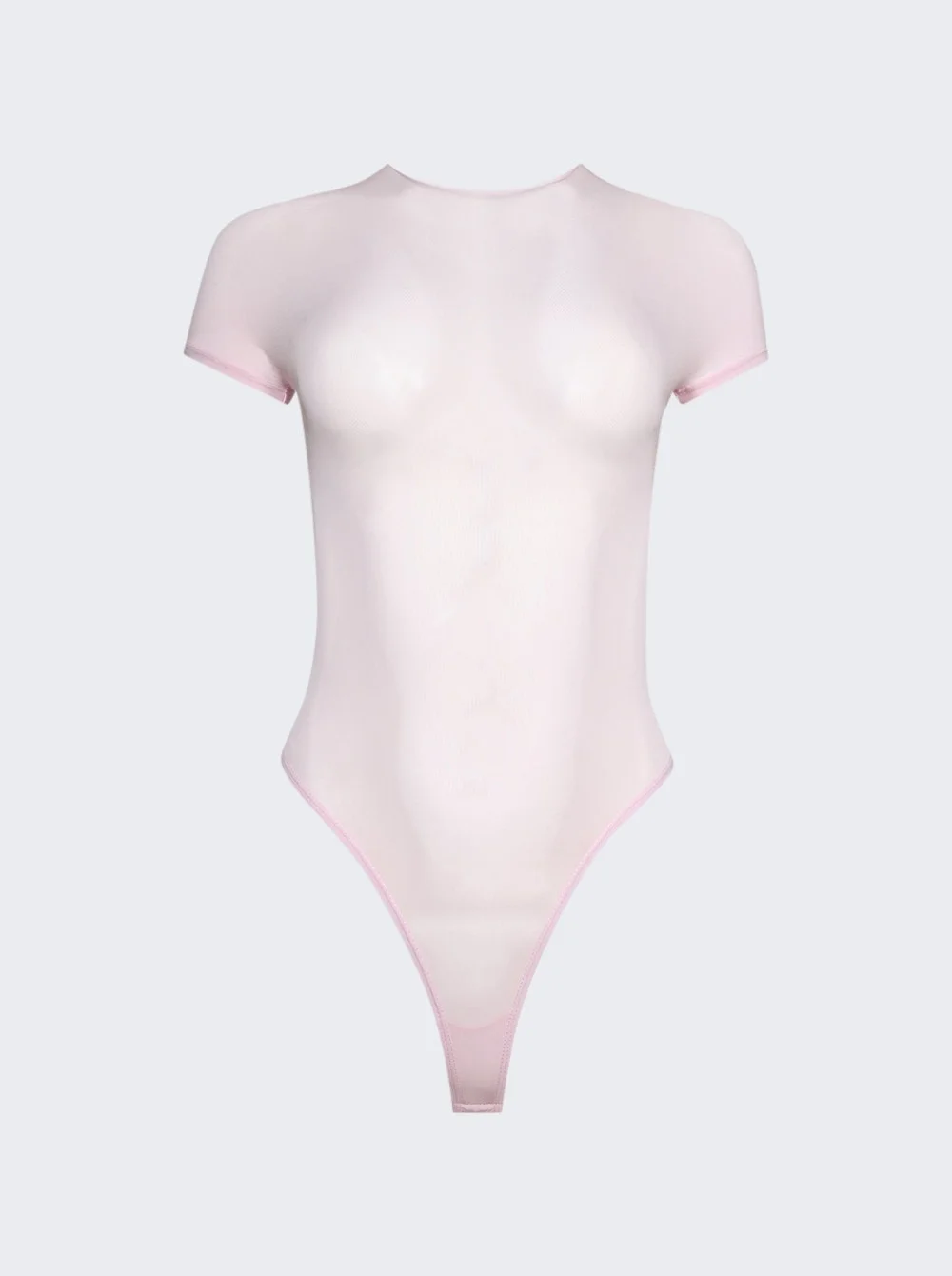 Details - Fitted silhouette - Crewneck - Short sleeve - Sheer design - High cut leg - Adjustable snap closures - Care according to label - Material: 86% Polyamide, 14% Elastane Brand Style: W1120S25NY Designer/Brand: WARDROBE.NYC