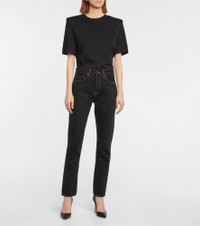 A classic addition to your denim repertoire, these black washed jeans from WARDROBE.NYC are cut to a high-rise with a slim fit. Accented by contrast stitching, this pair is made in the USA and offers a five-pocket design. Product Details - Pockets: five pockets - Belt loops - Care instructions: machine wash cold - Closure: concealed buttoned front - Made in the USA - Material: 100% cotton - Item number: P00480902 Size & Fit - True to size - Mid-weight material - Non-stretchy fabric - Slim-leg - High-rise - Inseam length approx: 78cm-30.5" - The model seen in the picture is 178cm-5'10" and wearing a size 26