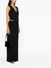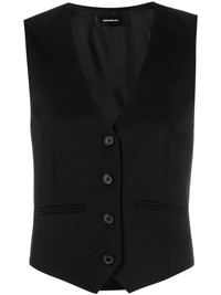 wool waistcoat Inspired by traditional menswear, Wardrobe.NYC's waistcoat is cut in a sharp and tailored silhouette. Crafted from wool, the fit is adjustable thanks to the slider featured at the back. Highlights - Black - Virgin wool - V-neck - Sleeveless - Front button fastening - Adjustable strap at rear - Curved front hem Imported Composition Lining: Viscose 100% Outer: Virgin Wool 100% SIZE & FIT Model measurements Height 5 ft 10 in(1.78 m) Bust/Chest 31.49 in(80 cm) Hips 35.03 in(89 cm) Waist 23.62 in(60 cm) FittingInformation Designed for a slim fit that sits just away from the body offering a close yet comfortable fit Made from a midweight non-stretch fabric, this piece offers minimal elasticity when worn This piece fits true to size – take your usual size