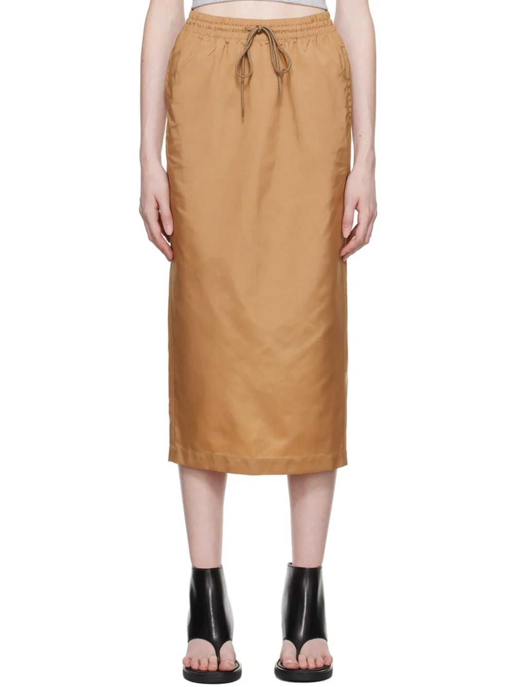 Water-repellent nylon canvas skirt. · Drawstring at elasticized waistband · Two-pocket styling · Central vent at back Supplier color: Tan 100% polyamide. Made in Portugal 232277F092001