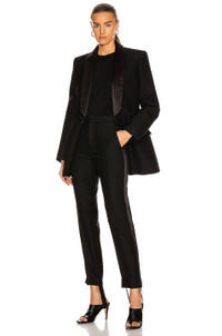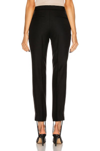 Details - Self: 100% wool - Contrast Fabric: 100% silk - Lining: 100% cotton - Made in Slovakia - Dry clean only - Zip fly with hook and bar closure - Side slit pockets - Tuxedo side trim - Back welt pockets - Elasticized stirrup detail at hem - Our Style No. WNYF-WP3 - Manufacturer Style No. W2015R05