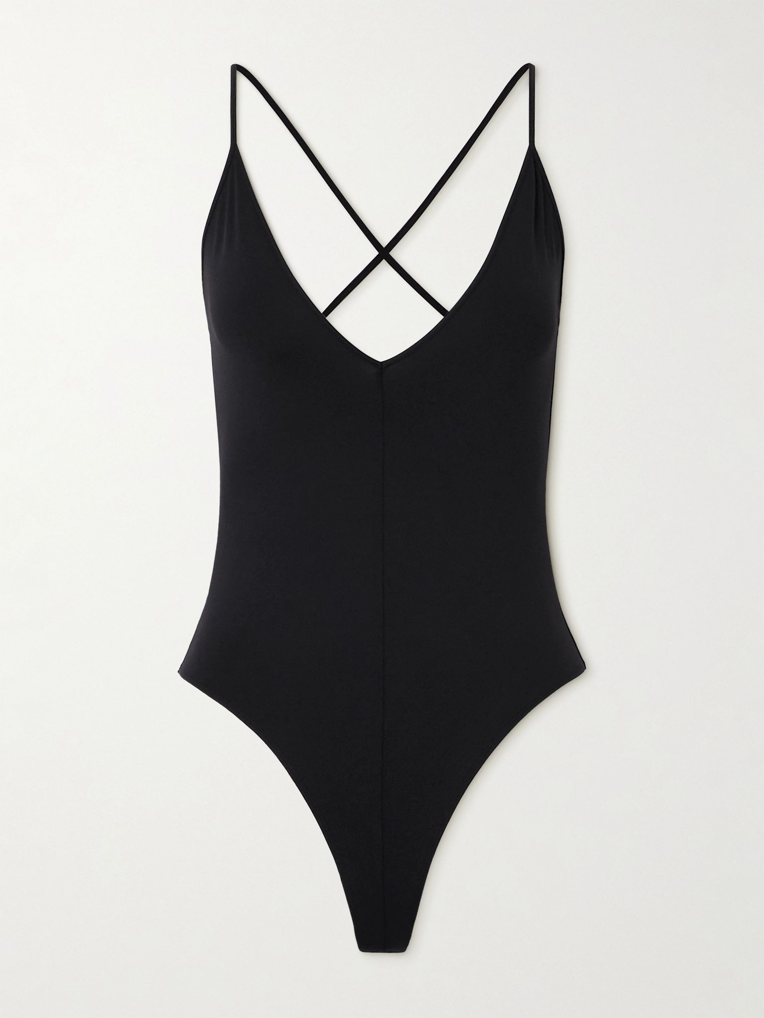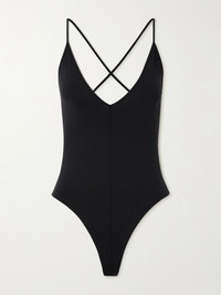 WARDROBE.NYC's bodysuit is made from stretch-jersey that feels so soft against your skin. It's cut for a body-skimming fit and features a plunging V-neckline and an invisible thong base for a smooth silhouette. Layer it under tailoring or denim. Size & Fit - Fits true to size, take your normal size - Fits true to size, however those who are between sizes should take the larger size - Minimal brief coverage - Model is 175cm/ 5'9", bra size 32C and is wearing a size Small Details & Care - Black stretch-jersey - Pulls on - 74% polyamide, 26% elastane - Dry clean
