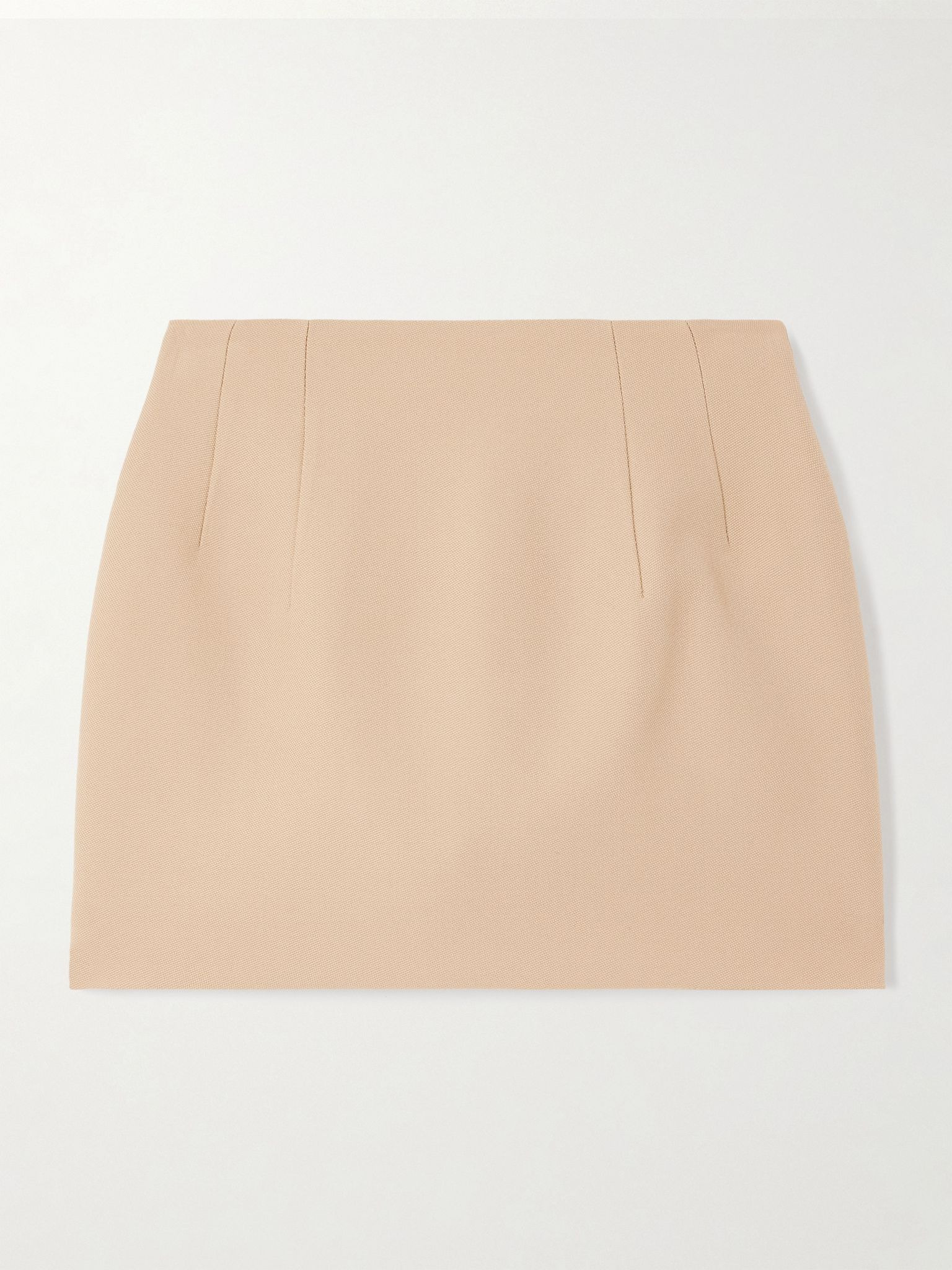 WARDROBE.NYC’s 'Contour' mini skirt is designed with a high, darted waist and curved shape that enhances your figure. It's made from wool in a classic beige shade and has a smoothing lining. Size & Fit - Fits true to size, take your normal size - Mini-length, designed to be worn at the waist - Mid-weight, non-stretchy fabric - Model is 177cm/ 5'10" and is wearing a size XSmall Model measurements: - Bust: 75cm/ 29.5" - Waist: 60.5cm/ 24" - Hip: 88.5cm/ 35" Details & Care - Beige wool - Concealed hook and zip fastening at back - 100% wool; lining: 100% viscose - Fully lined - Dry clean