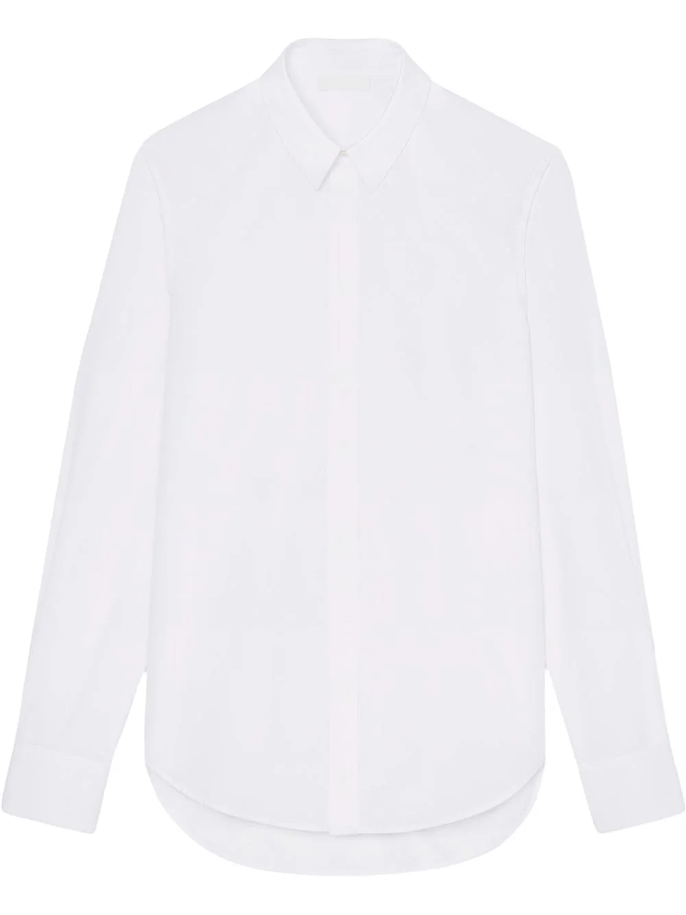 long-sleeve cotton shirt white cotton classic collar buttoned cuffs curved hem concealed front fastening long sleeves Imported Composition Cotton 100% Washing instructions Hand Wash