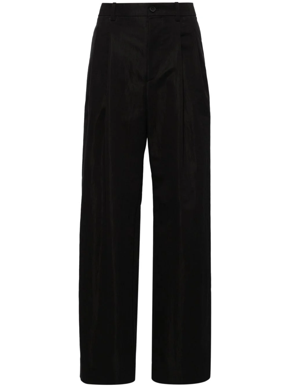 wide-leg tailored trousers Highlights - Black - Cotton blend - Gabardine weave - Pleat detailing - Belt loops - Front button and zip fastening - Wide leg - Two side slit pockets - Two rear welt pockets - Straight hem Imported Composition Outer: Cotton 78%, Polyamide 22% Lining: Cotton 100% SIZE & FIT Model measurements Height 5 ft 10 in(1.78 m) Bust/Chest 33.07 in(84 cm) Hips 36.61 in(93 cm) Waist 24.8 in(63 cm) FittingInformation Designed for a straight-leg fit, these trousers allow for a close fit at the waist and an unrestricted, comfortable fit over the leg Made from a midweight non-stretch fabric This piece fits true to size – take your usual size
