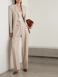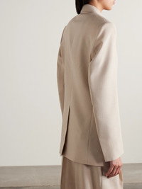 WARDROBE.NYC's chic tailoring is loved by everyone from Hailey Bieber to Rosie Huntington-Whiteley. This blazer is made from beige wool-crepe with angular padded shoulders and notched lapels. The full satin lining ensures smooth layering.