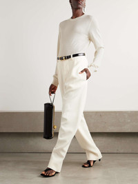 EDITORS'NOTES WARDROBE.NYC excels with those staple items that'll slot effortlessly into your everyday rotation. This sweater is knitted from fine wool with classic ribbed trims. Style yours with tailored pants and loafers. SIZE & FIT Model measurements: - Fits true to size, take your normal size - Designed for a slightly loose fit - Lightweight knit - Model is 177cm/ 5'10" and is wearing a size Small - Bust: 80cm/ 31.5" - Waist: 60cm/ 23.5" - Hip: 89cm/ 35" DETAILS & CARE - Off-white wool - Slips on - 100% wool - Dry clean - Designer color: Bone