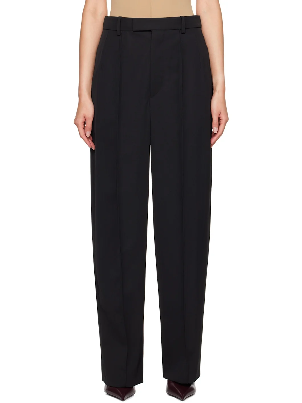 Wide-leg and tapered wool twill trousers. · Belt loops · Four-pocket styling · Zip-fly · Pleats at front · Pinched seam at front and back legs · Darts at back waistband Part of the WARDROBE.NYC x Rosie Huntington-Whiteley collaboration. Supplier color: Black Body: 100% wool. Lining: 100% cotton. Made in Slovakia (Slovak Republic) 251277F087008