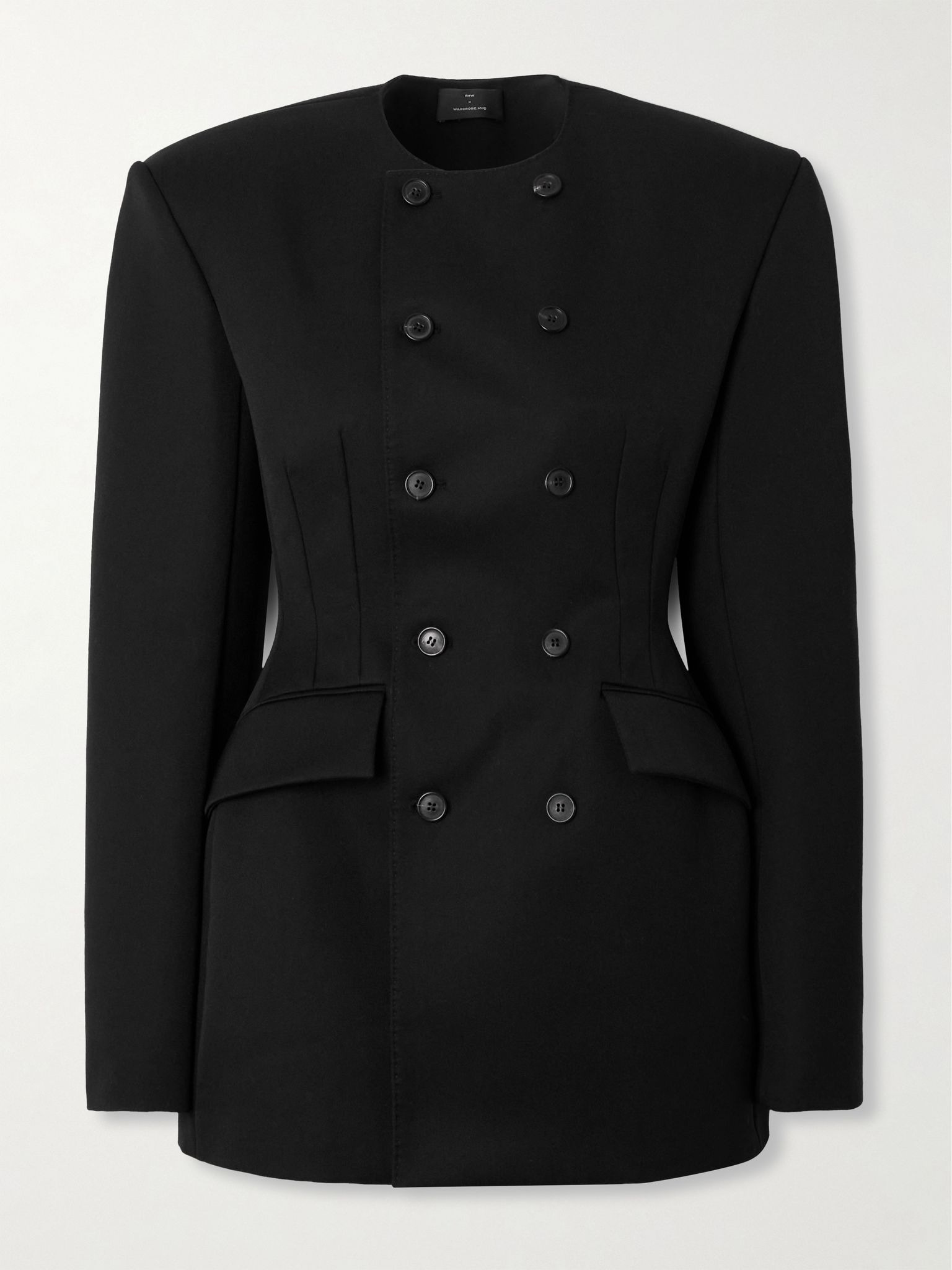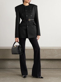 WARDROBE.NYC and Rosie Huntington-Whiteley team up on a collection that merges the brand's chic minimalism with the model's refined personal style. This mini dress is made from twill that nips in at the waist and has a collarless neckline and smart double-breasted front. Wear yours with tights or tailored pants. Size & Fit - Fits true to size, take your normal size - Designed for a slim fit - Internal shoulder pads - Mid-weight, non-stretchy fabric - Model is 175cm/ 5'9" and is wearing a size Small Model measurements: - Bust: 78cm/ 31" - Waist: 62cm/ 24.5" - Hip: 92cm/ 36" Details & Care - Black twill - Button fastening through double-breasted front - 53% polyamide, 47% wool - Dry clean