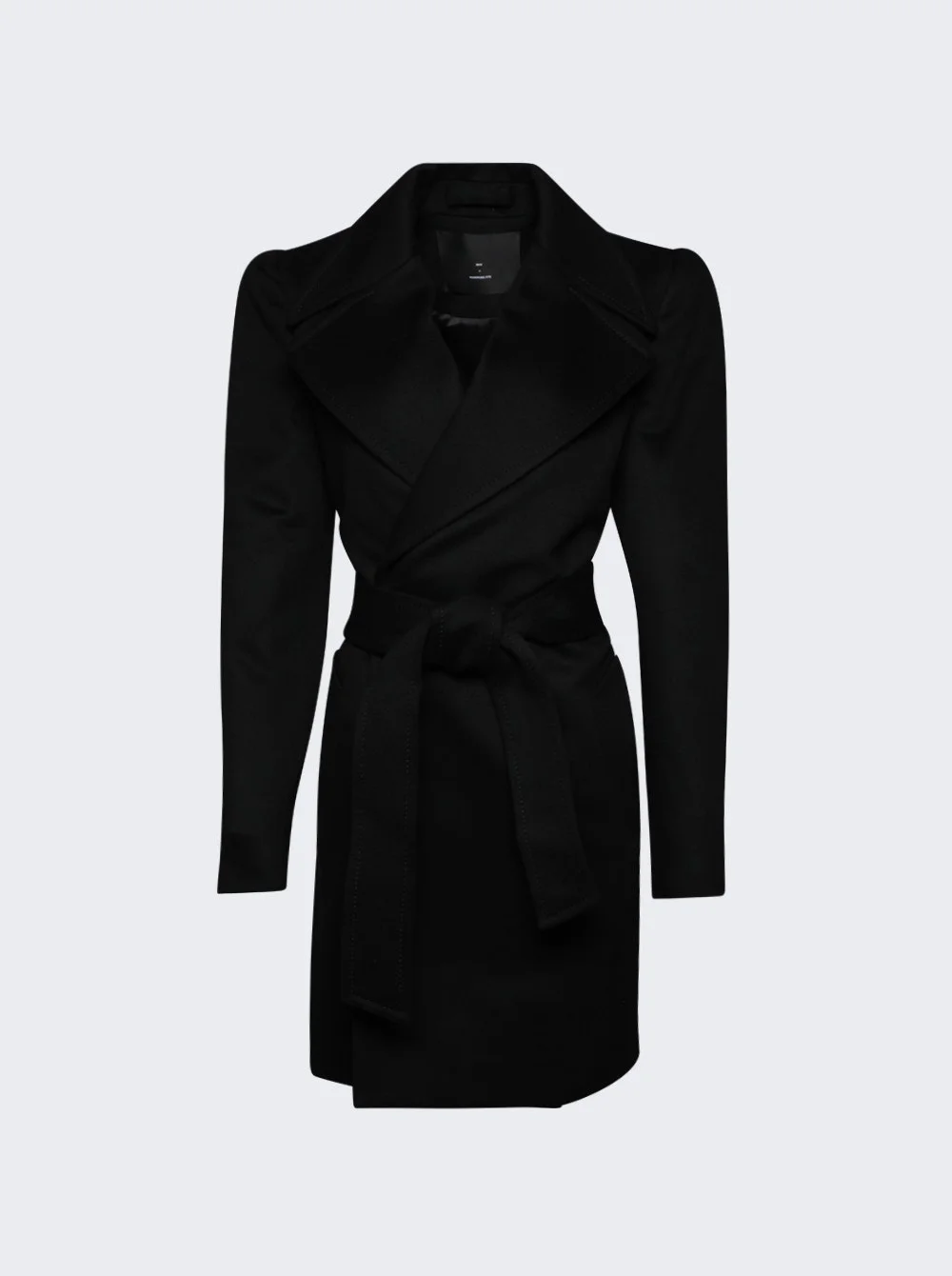 Details - Designed in collaboration with Rosie Huntington-Whiteley - Tailored robe coat in rich Italian wool - Statement shoulder - Midi length - Long sleeve - Exaggerated collar and lapel - Belt loops - Self Tie Belt - Care according to label - Material: 100% Wool - Model is 5'9"/175cm and is wearing a size S Brand Style: W4100R18WO Designer/Brand: WARDROBE.NYC