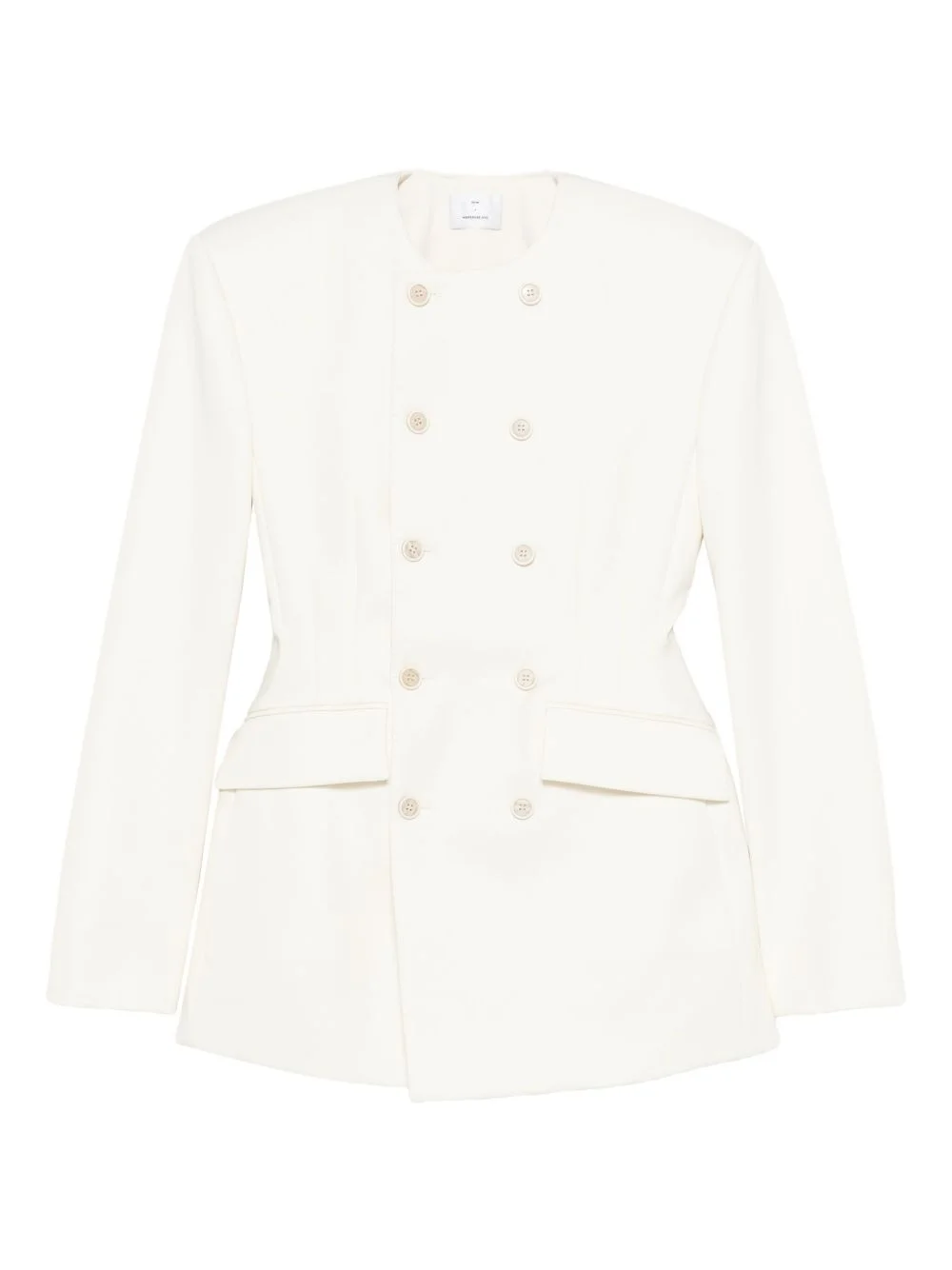Blazer dress Highlights - Ivory - Twill weave - Double-breasted button fastening - Collarless - Round neck - Shoulder pads - Long sleeves - Exposed-seam detailing - Dart detailing - Two side flap pockets - Full lining - Straight hem - Thigh-length Imported Composition Fabric 100% SIZE & FIT Model measurements Height 5 ft 10 in(1.78 m) Bust/Chest 31.49 in(80 cm) Hips 37 in(94 cm) Waist 23.62 in(60 cm)