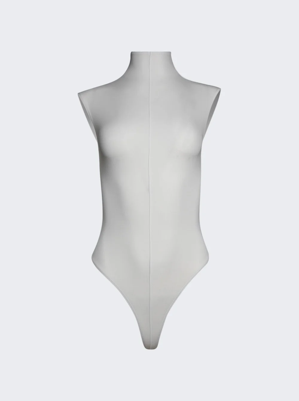 Details - Bodysuit silhouette - Sleeveless - High neck - Pintuck detail - High-cut leg opening - Adjustable snap closures - Care according to label - Material: 84% Polyamide, 16% Elastane Size Information: Vendor Color Code: Brand Style: W1128F25JE Designer/Brand: WARDROBE.NYC