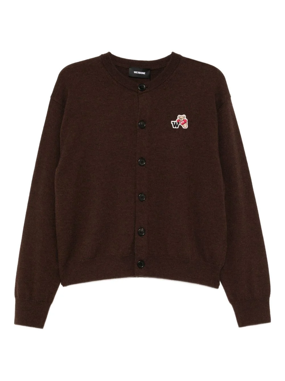 bear-embroidered cardigan Highlights - Coffee brown - Front button fastening - Ribbed cuffs and hem - Long sleeves Imported Composition Wool 100% Washing instructions Hand Wash