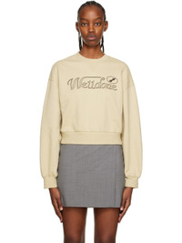 Beige Cursive Crop Sweatshirt