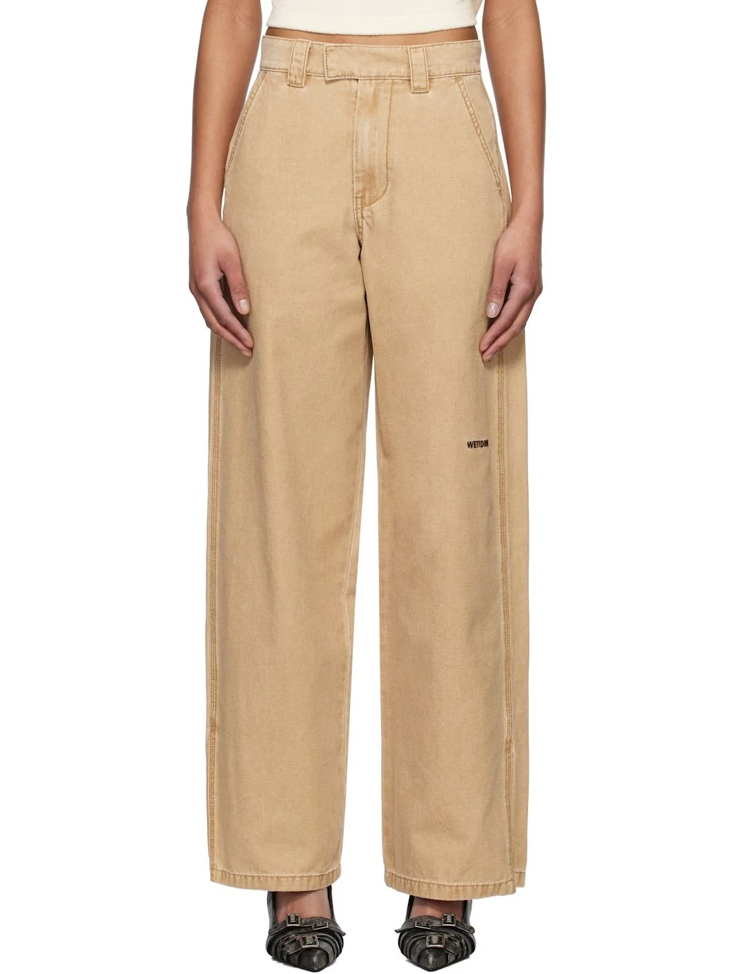 Cotton canvas trousers. Fading throughout. · Mid-rise · Belt loops · Four-pocket styling · Zip fly · Logo embroidered at leg · Vented outseams Supplier color: Beige 100% cotton. Made in South Korea 251327F087000