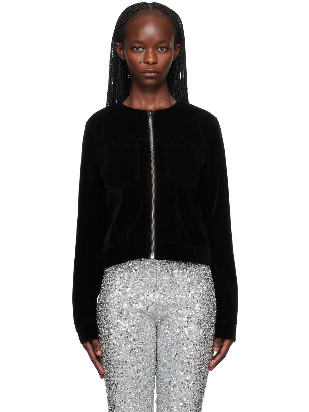 Polyester velour jacket. · Paneled construction · Round neck · Zip closure · Patch pockets · Single-button barrel cuffs · Welt pockets at interior · Full logo-woven satin lining · Logo-engraved silver-tone hardware Supplier color: Black Body: 100% polyester. Trim: 100% nylon. Lining: 52% polyester, 48% rayon. Made in South Korea 232327F063001