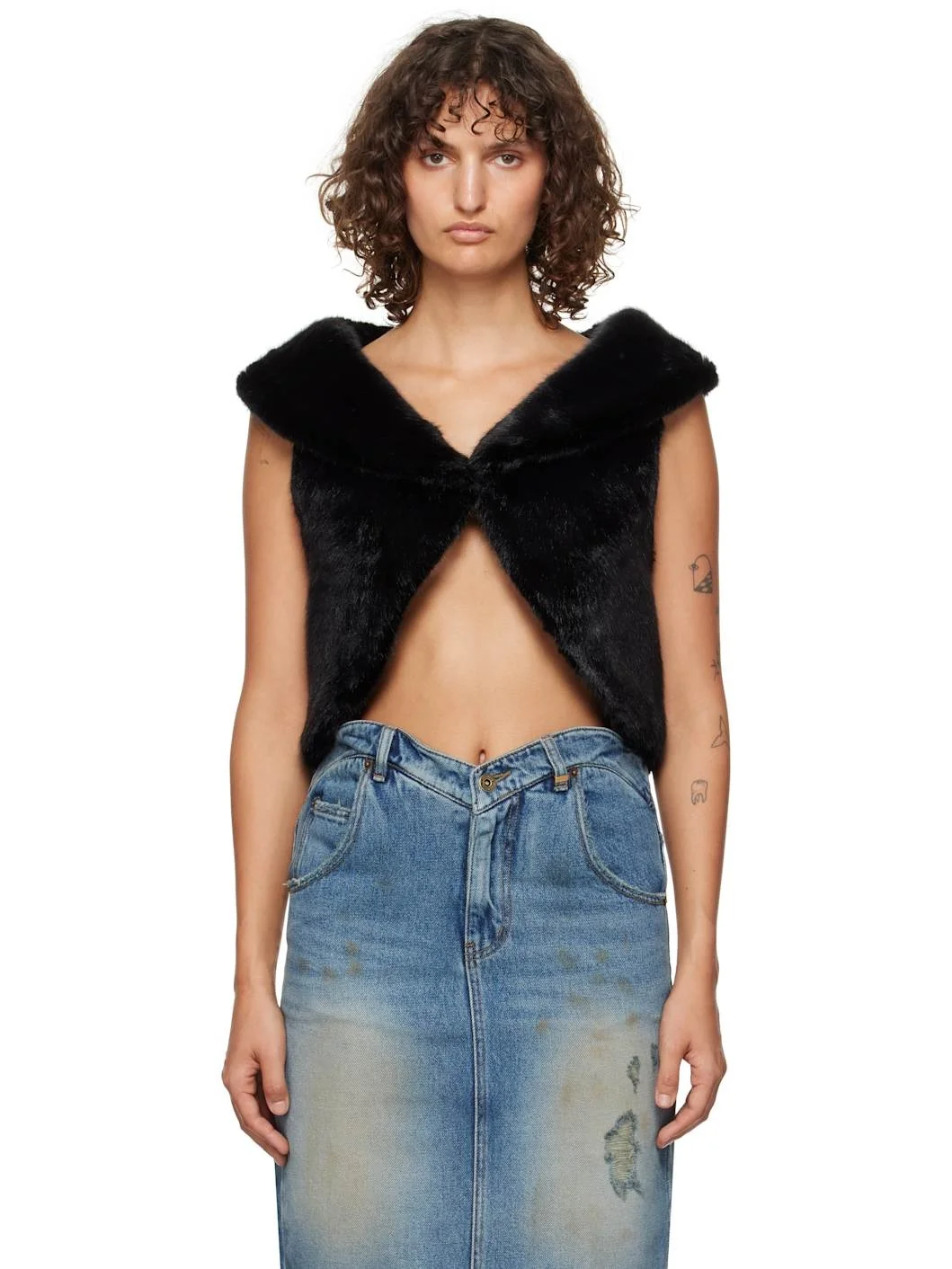 Black Cropped Faux-Fur Vest
