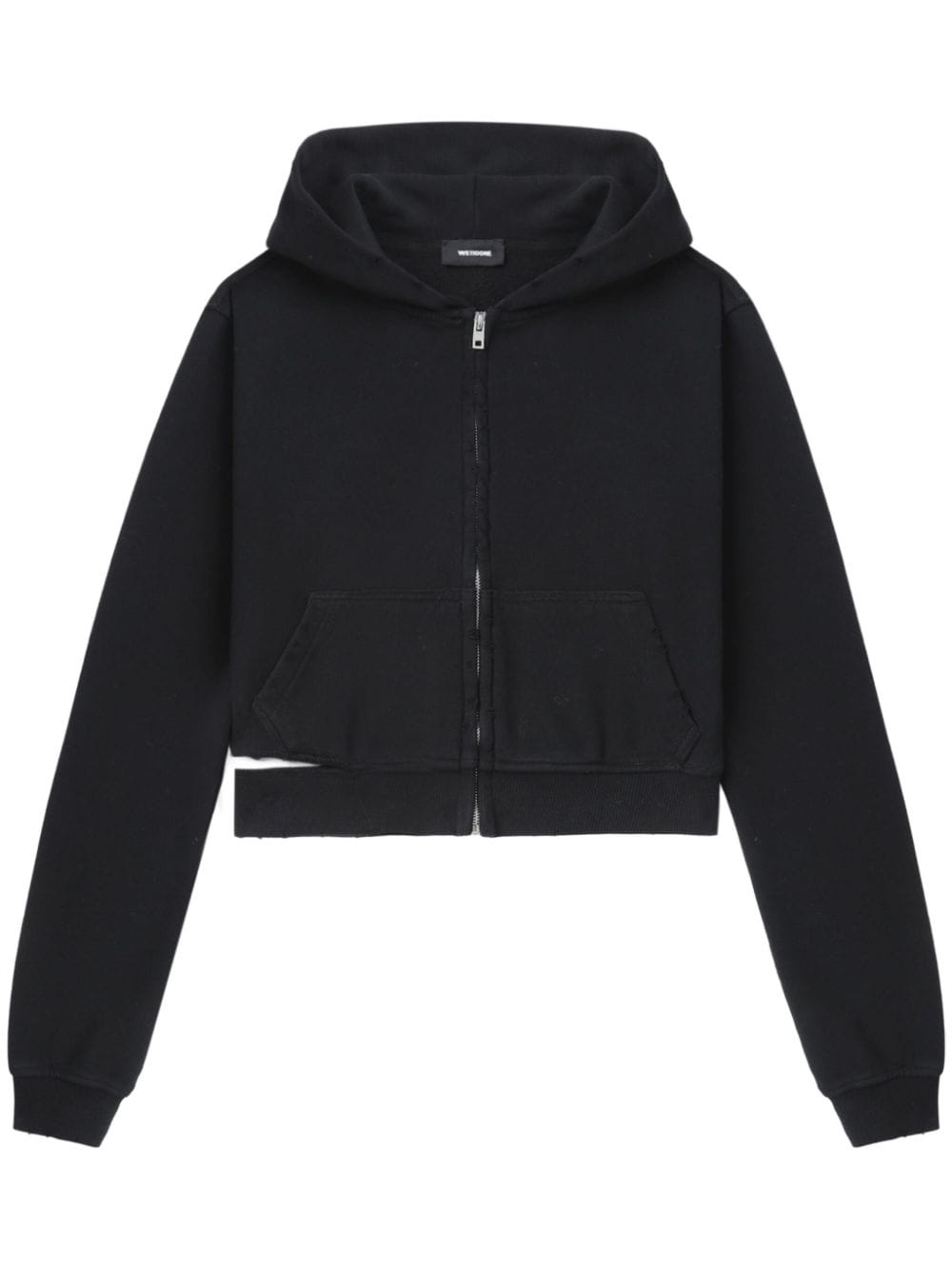 cut-out hoodie Highlights - Black - Cotton - Jersey texture - Front zip fastening - Classic hood - Drop shoulder - Long sleeves - Two front pouch pockets - Cut-out detailing - Draped strap detailing - Asymmetric hem Imported Composition Cotton 100%