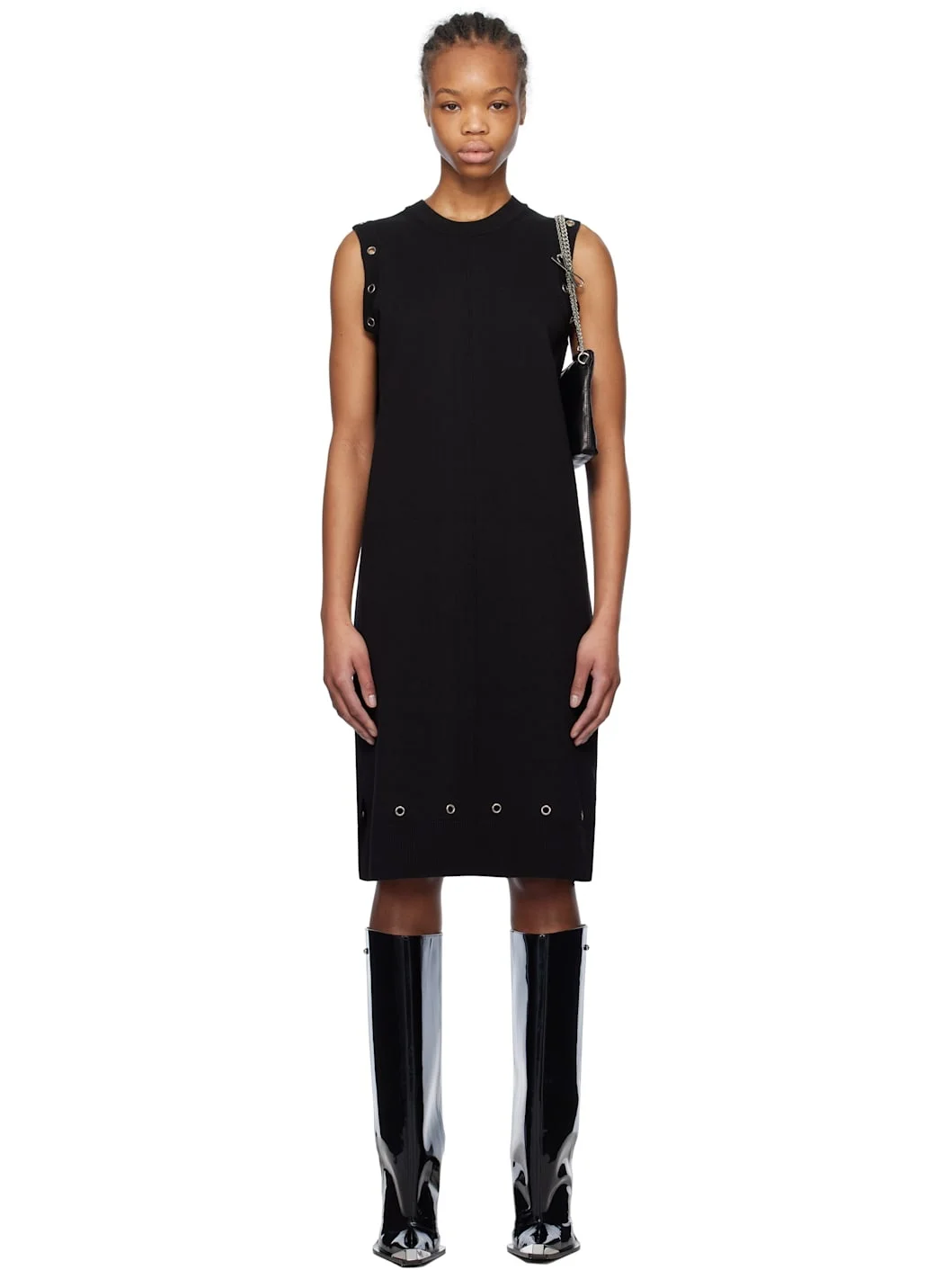 Knit cotton mini dress. · Rib-knit crewneck, hem, and armscyes · Pinched seam at front and back · Eyelets at hem and armscyes · Vented side seams Supplier color: Black 100% cotton. Made in South Korea 251327F052000