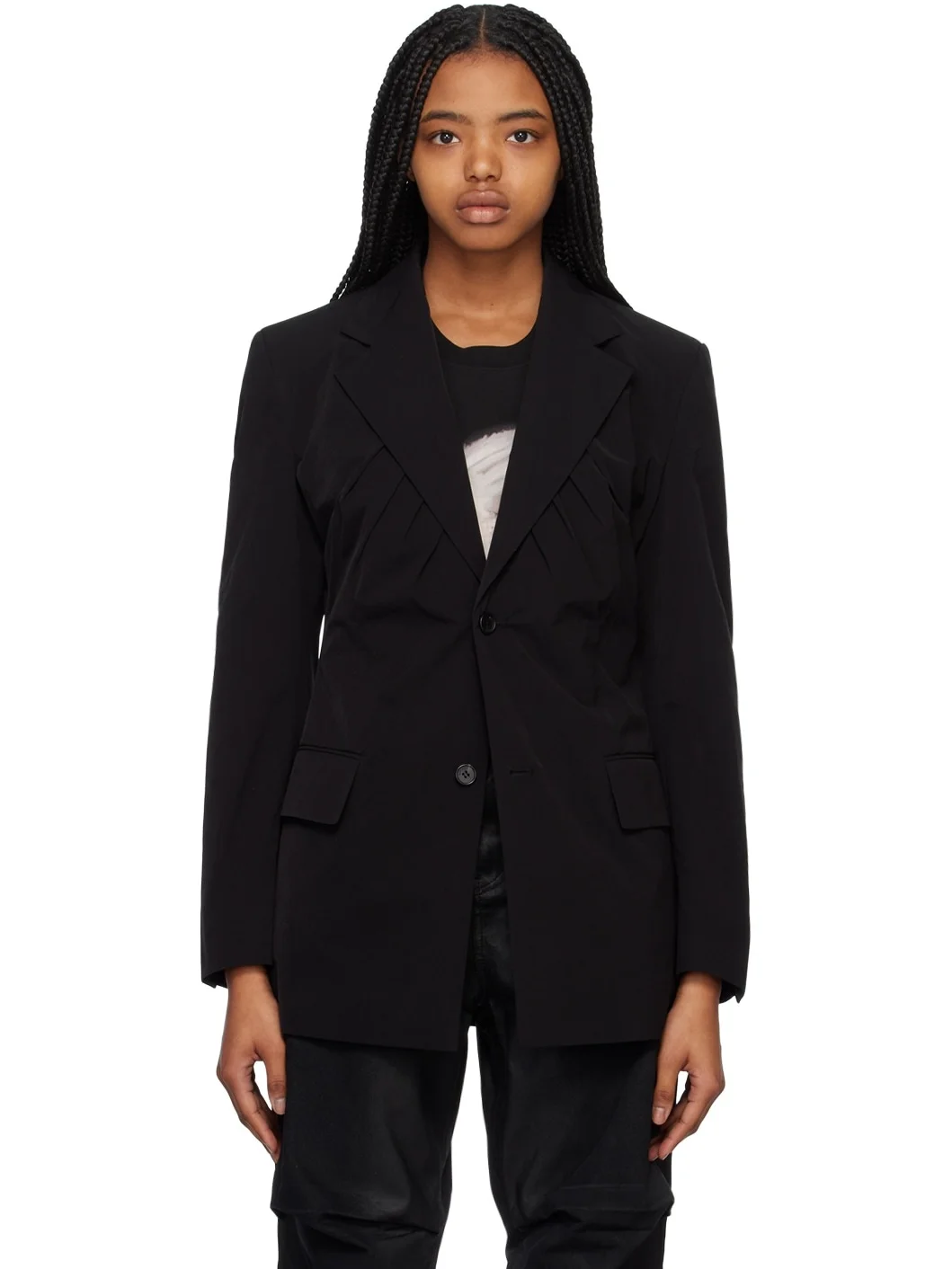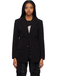 Polyester taffeta blazer. Gathering throughout. · Notched lapel · Two-button closure · Flap pockets · Padded shoulders · Concealed two-button fastening at cuffs · Central vent at back hem · Welt pockets at interior · Logo-woven satin lining Supplier color: Black