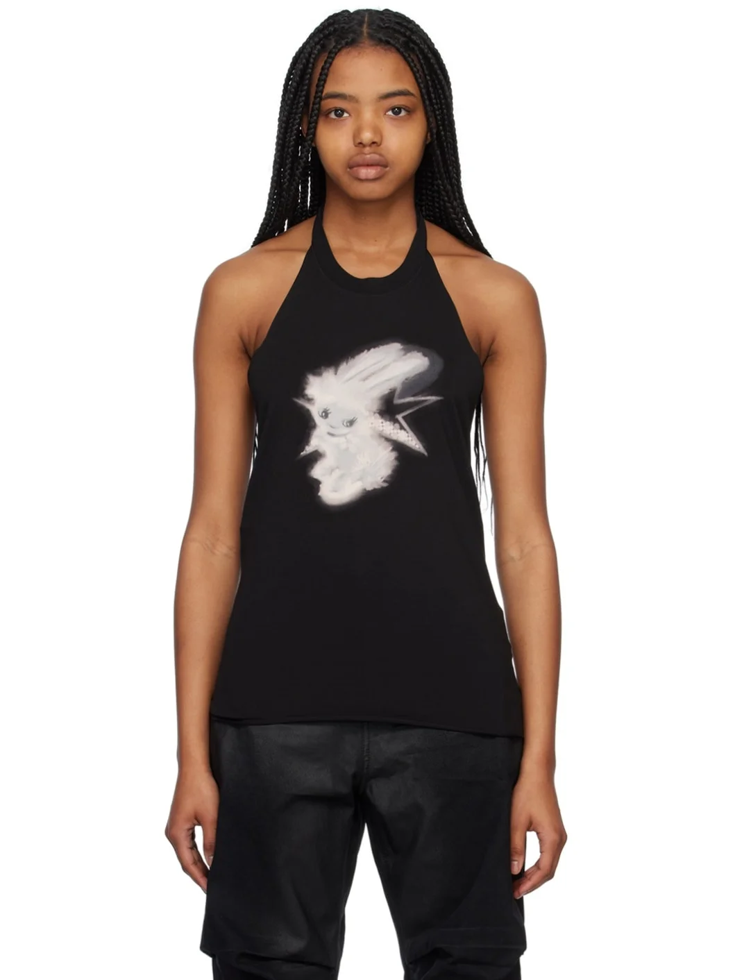 Stretch cotton-blend jersey top. Raw edges throughout · Rib knit halter neck · Graphic printed at chest · Open back Supplier color: Black 63% cotton, 29% polyester, 8% polyurethane. Made in South Korea 231327F111001