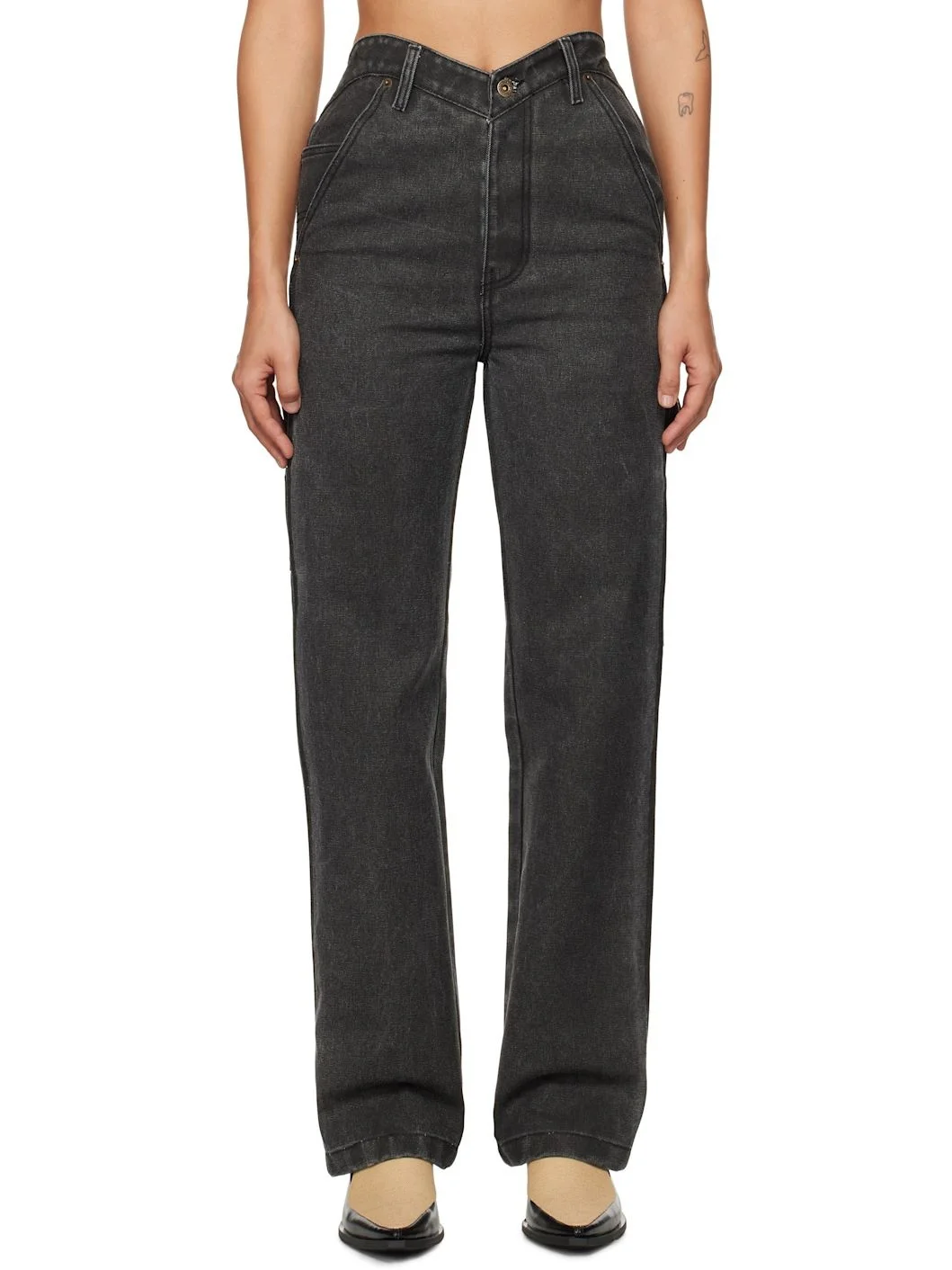 Polyester- and cotton-blend canvas trousers. Fading throughout. · Mid-rise · Belt loops at sweetheart waistband · Five-pocket styling · Zip-fly · Patch pockets and hammer loop at back · Logo-engraved brass-tone hardware Supplier color: Black 64% polyester, 33% cotton, 3% rayon. Made in South Korea 242327F087001