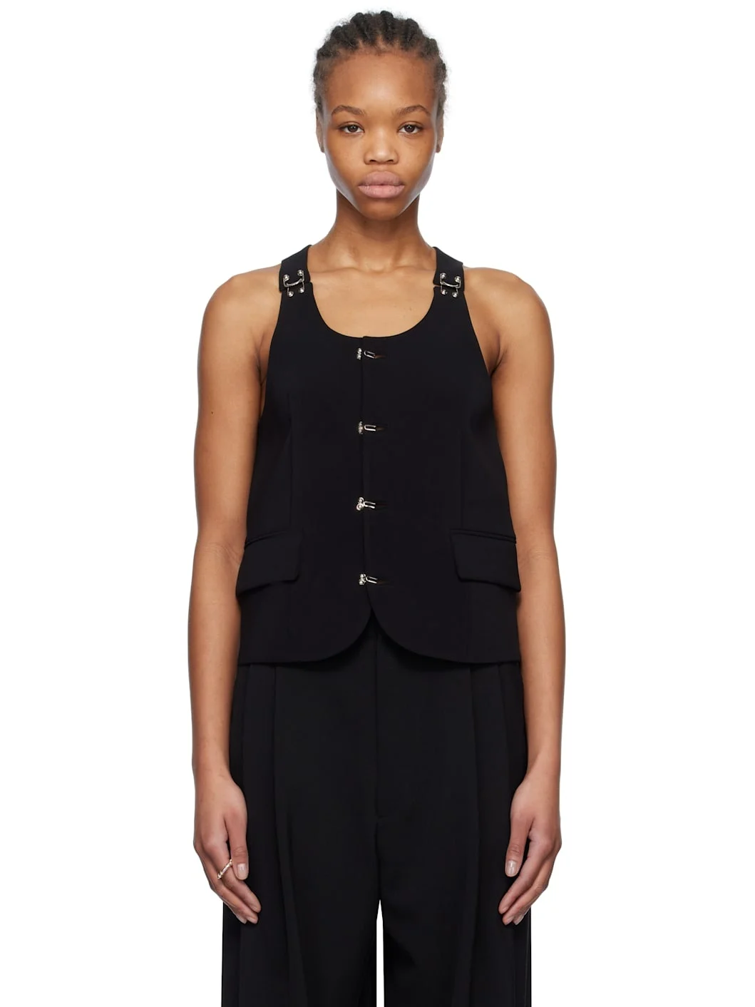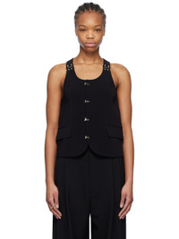 Plain-woven stretch polyester vest. · Scoop neck · Hook-eye closure · Flap pockets · Hook-eye fastening at shoulder straps · Full satin lining Supplier color: Black 91% polyester, 9% polyurethane. Made in South Korea 251327F068000