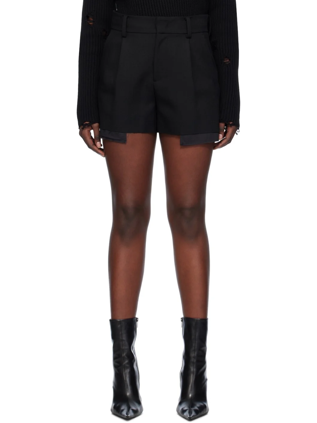 Wool canvas shorts. · Layered construction · Belt loops · Four-pocket styling · Zip-fly · Pleats at front · Raw edge at cuffs and exposed lining Supplier color: Black 100% wool. Made in South Korea 241327F088000