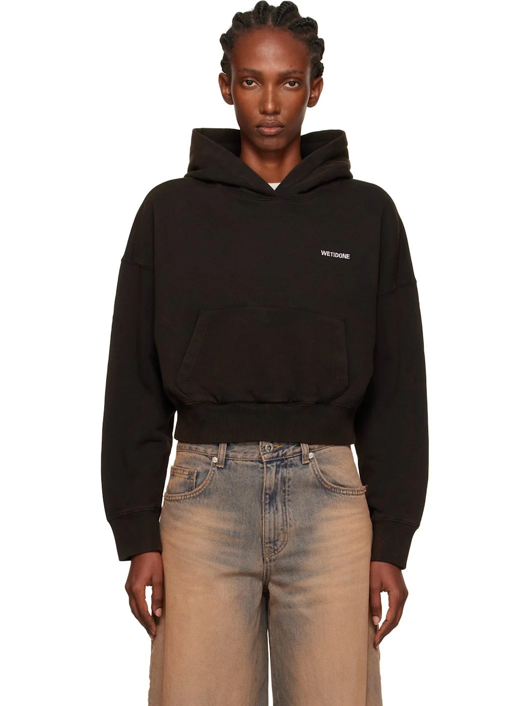 Cotton French terry hoodie. · Discoloration throughout · Logo embroidered at chest · Kangaroo pocket at waist · Rib-knit hem and cuffs · Dropped shoulders Supplier color: Black Body: 100% cotton. Trim: 95% cotton, 5% polyurethane. Made in South Korea 252327F097004