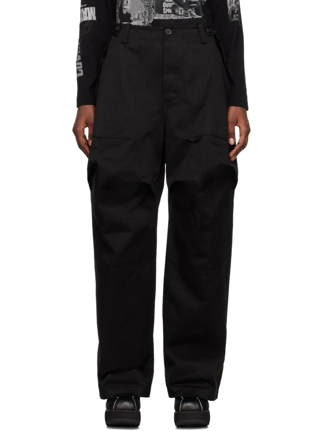 Cotton twill trousers. · Paneled construction · Button tab at waistband · Belt loops · Four-pocket styling · Button-fly Supplier color: Black